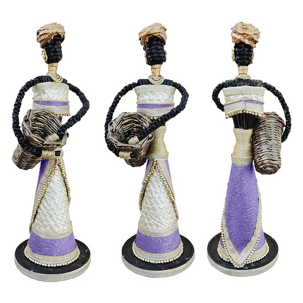 • African Doll Showpiece In Purple With Holding Basket With Two Hands