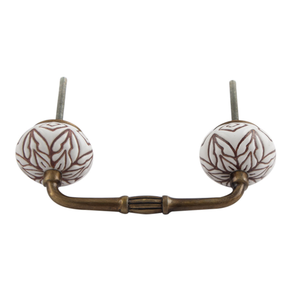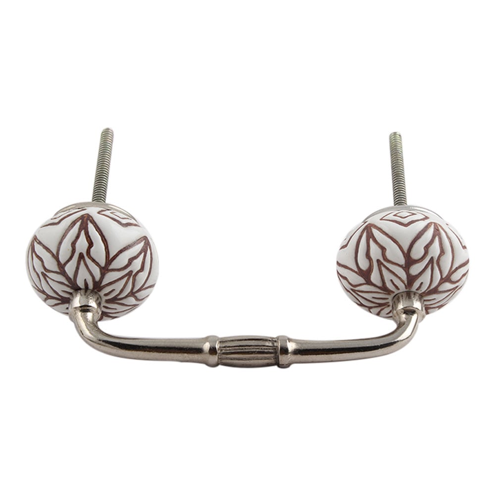 Indianshelf.com for bulk/wholesale orders.Indianshelf.us for personal purchases.The Amaryllis Brown Etched Ceramic Floral Bridge Handle is a stunning piece that adds a touch of elegance to your furniture. Featuring delicate floral etchings and warm brown hues, this handle is ideal for anyone looking to blend beauty with durability. Whether you're refreshing your kitchen, bathroom, or simply want to add a unique flair to your furniture, this ceramic handle is sure to stand out.