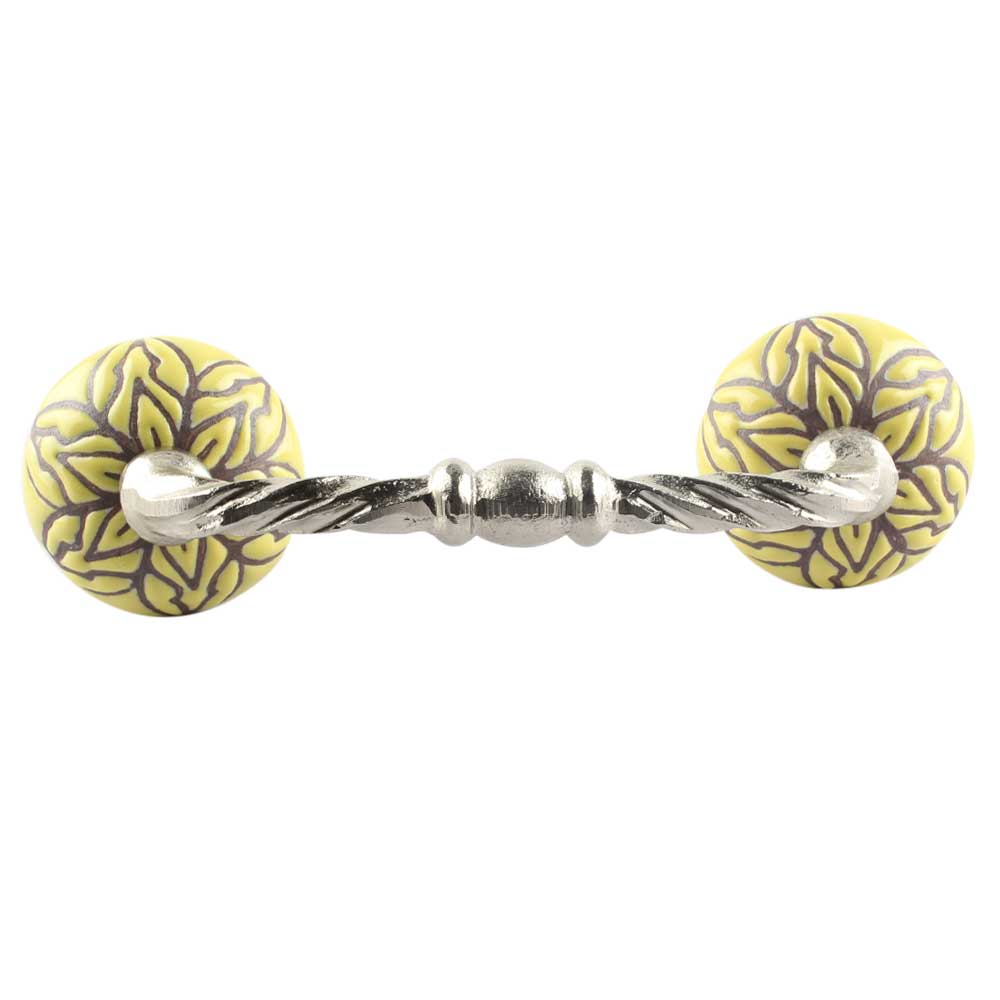 Amaryllis Etched Ceramic Cut Bridge Handle. Ideal for Drawer, Dresser, Cabinet, Wardrobe, Cupboard and Almirah etc.