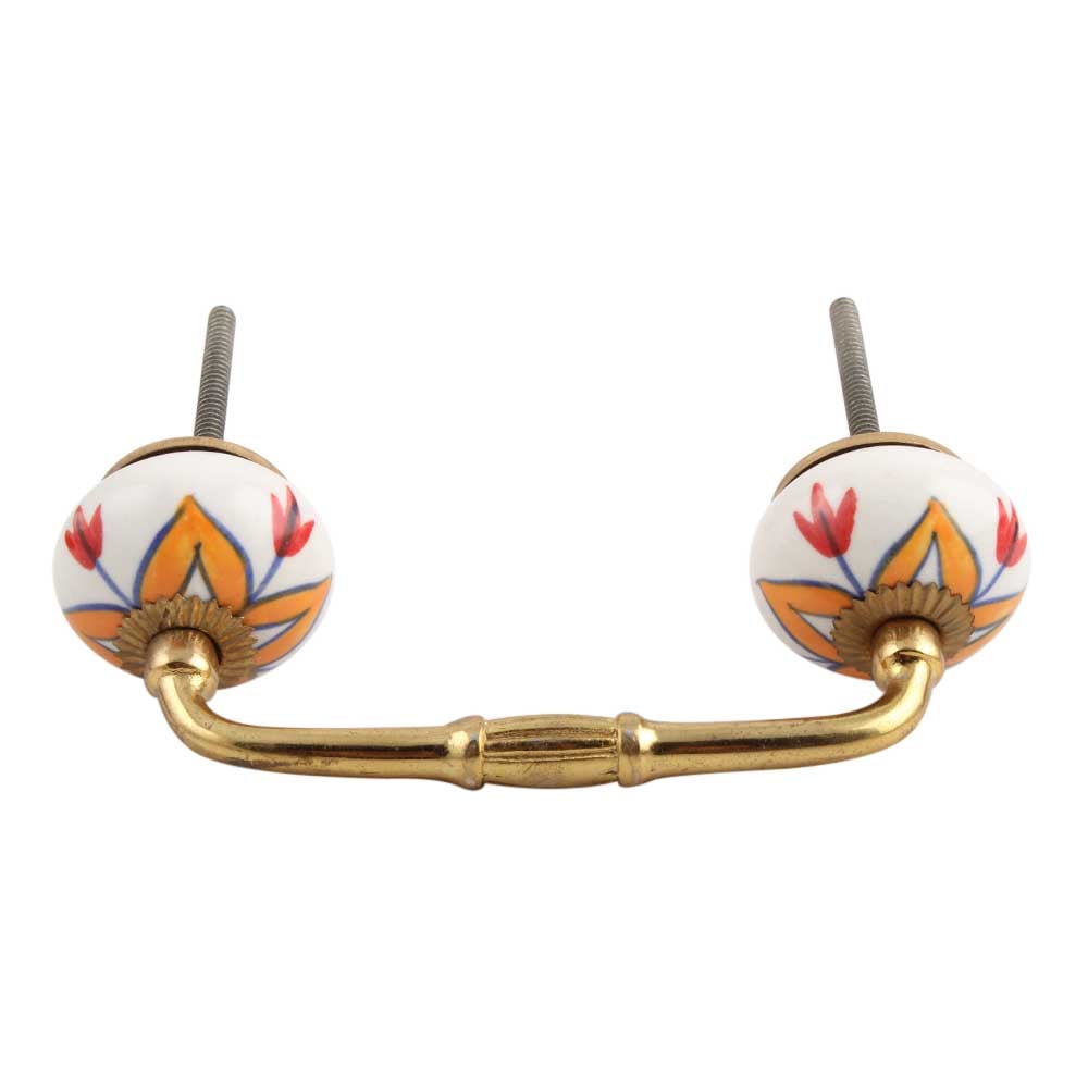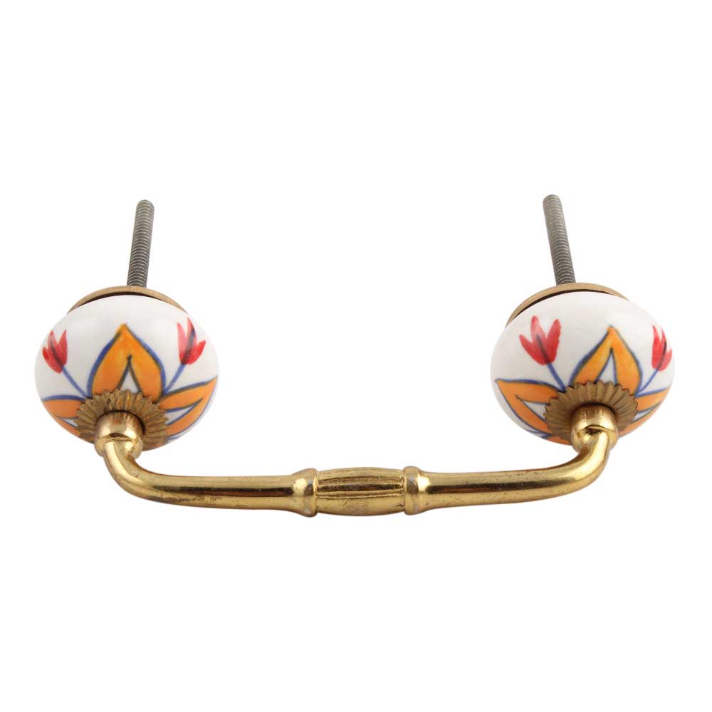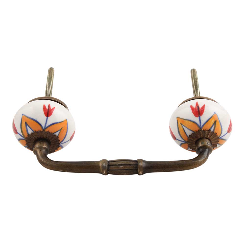 Indianshelf.com for bulk/wholesale orders.Indianshelf.us for personal purchases.The Amaryllis Mustard Flower Ceramic Bridge Handle adds a vibrant touch and elegance to your furniture. Featuring an intricate mustard flower design, this handle combines style with practicality. Made from high-quality ceramic and designed with a sturdy bridge handle, it’s an excellent choice for cabinets, drawers, and furniture makeovers. Whether you’re updating your kitchen, bathroom, or living room, this handle brings a warm and inviting feel.