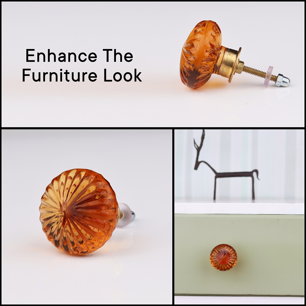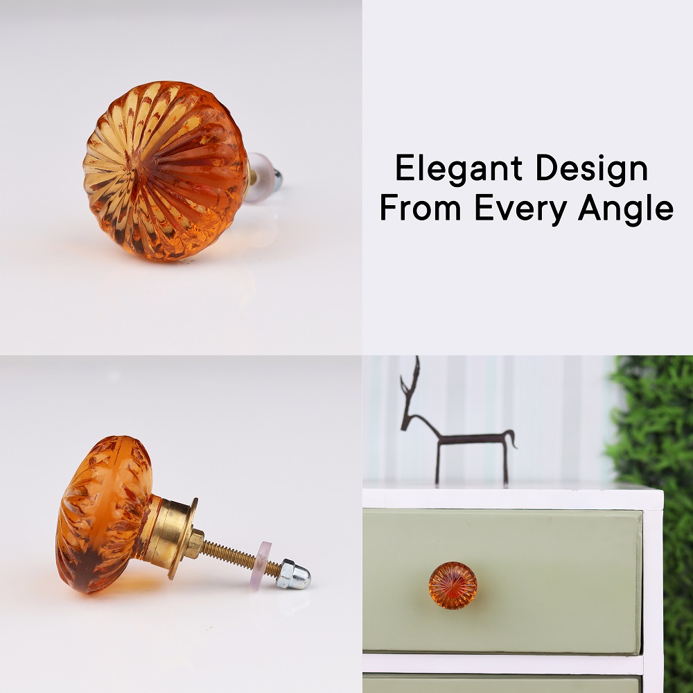 Amber Big Daisy Glass Knobs. Ideal for Drawer, Dresser, Cabinet, Wardrobe, Cupboard and almirah