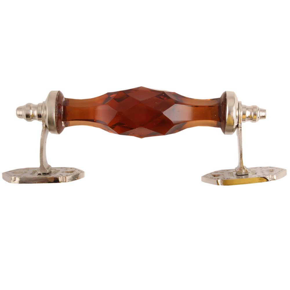 Amber Cut Glass Silver Big Dresser Handle. Ideal for Drawer, Dresser, Cabinet, Wardrobe, Cupboard and Almirah.