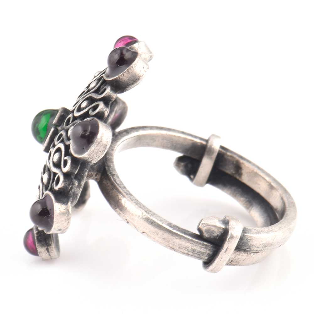 A very ethic design of 92.5 sterling silver ring to add a royal touch to traditional wear during weddings, engagements, meetings, seminars and other important social functions. Suited For girls and women of all age and group as it can be adjusted accordingly.