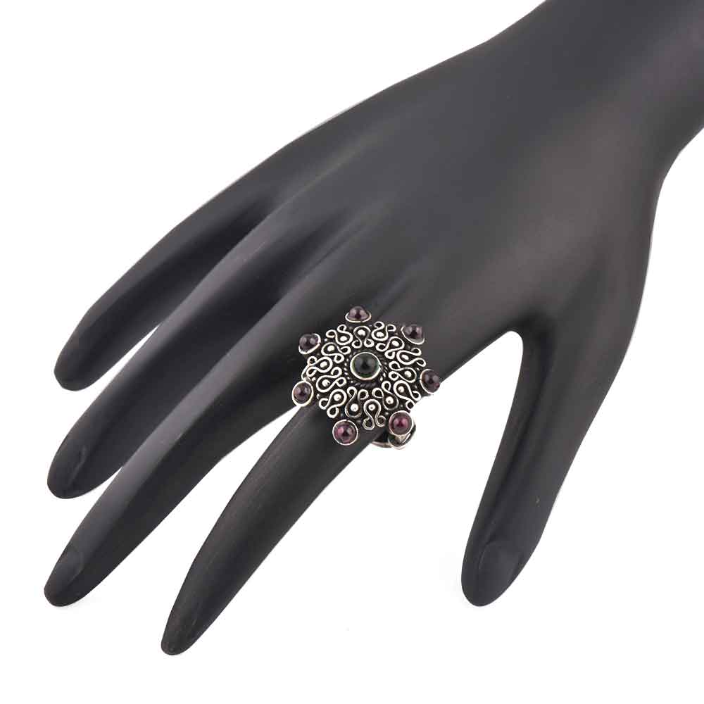 • Amethyst Stone 92.5 Sterling Silver Ring Stone Studded Filigree Pattern Festive Wear For Girls (Free Size)