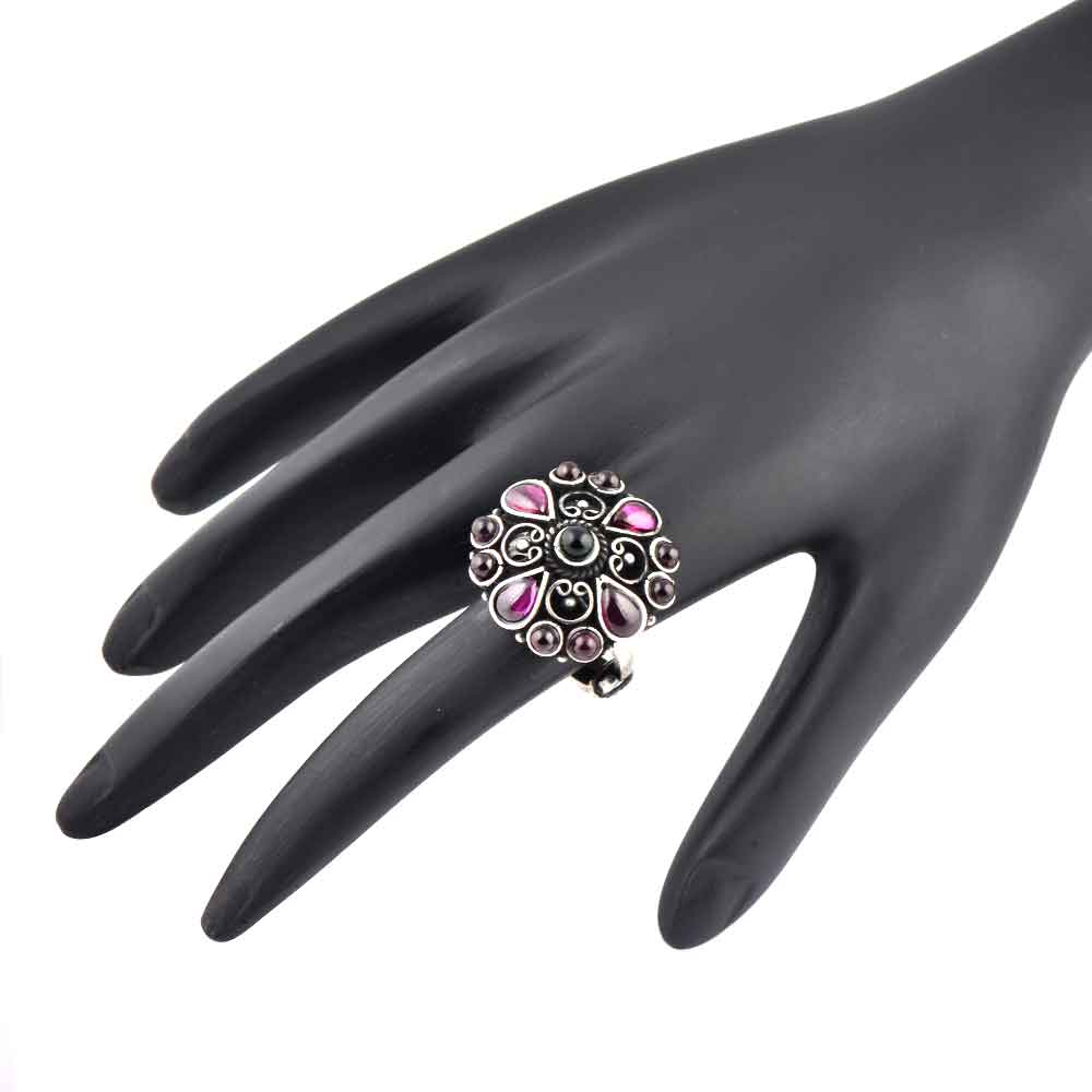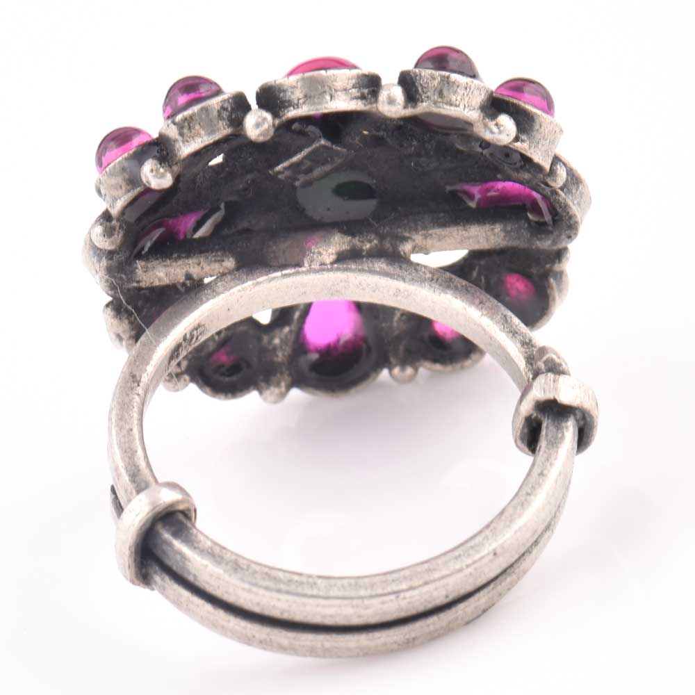 Amethyst Studded 92.5 Sterling Silver Ring With Intricate Design (Free Size)