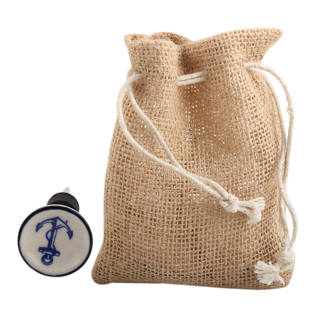 Anchor Blue Flat Ceramic Wine Stopper.zinc alloy wine bottle stopper with attractive Jute Bag Packaging.