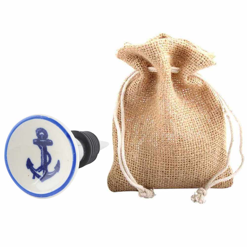 Anchor Flat Ceramic Wine Bottle Stopper. Zinc Alloy Wine Bottle Stopper with Attractive Jute Bag Packaging.