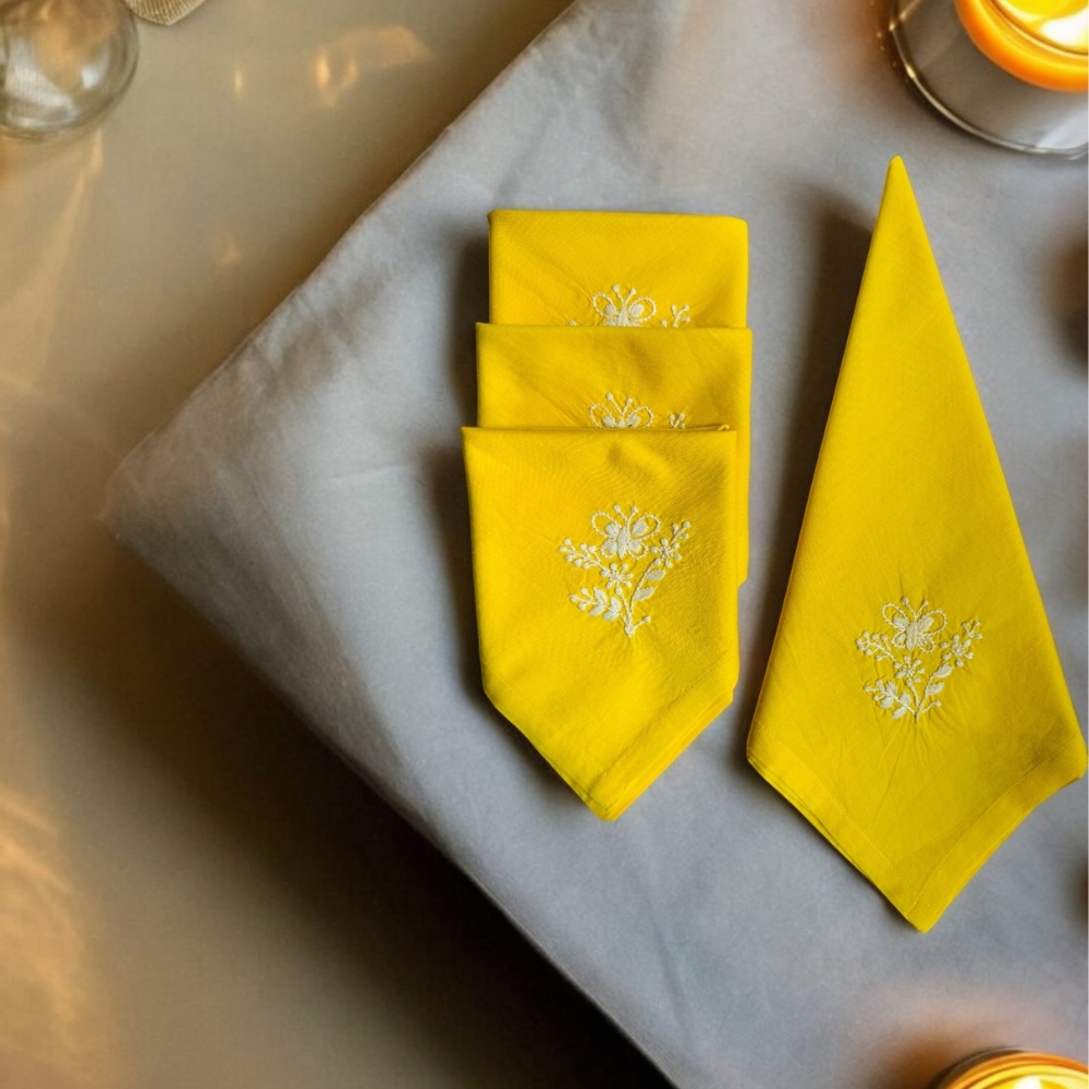 Anthophile Dinner Napkin- Set of 2, Crafted with elegance and artistry, the Anthophile Collection dinner napkin brings together the delicate beauty of Chikankari embroidery and the timeless charm of flowers. Each napkin is adorned with intricate floral motifs, inspired by an anthophile's love for blooms, adding sophistication and grace to your table setting. Whether for festive occasions or intimate gatherings, these napkins enhance any meal with a touch of artisanal luxury