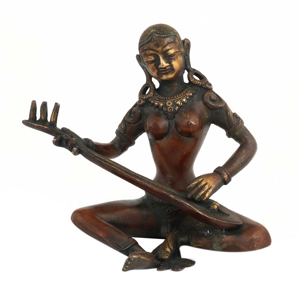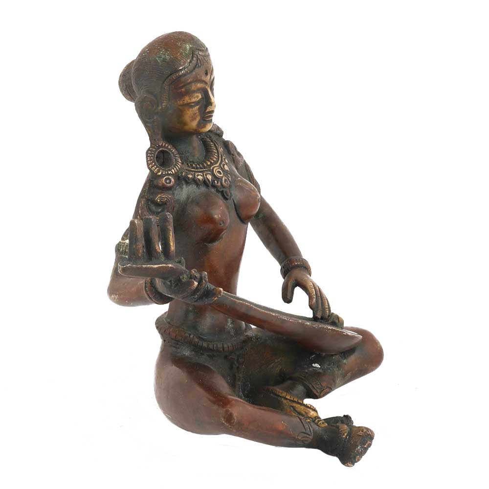 The Indian culture is so rich with architectural beauties speaking volumes about the talent of local artisans during the bygone era. One such antique piece is the sculpted artifact of a pre- historic lady playing the Veena. An apt decor item, this metallic sculpture can enhance the aesthetics of your home while it is a unique gifting item for family and friends