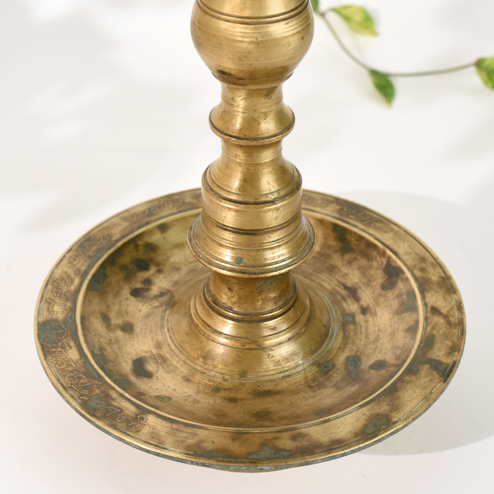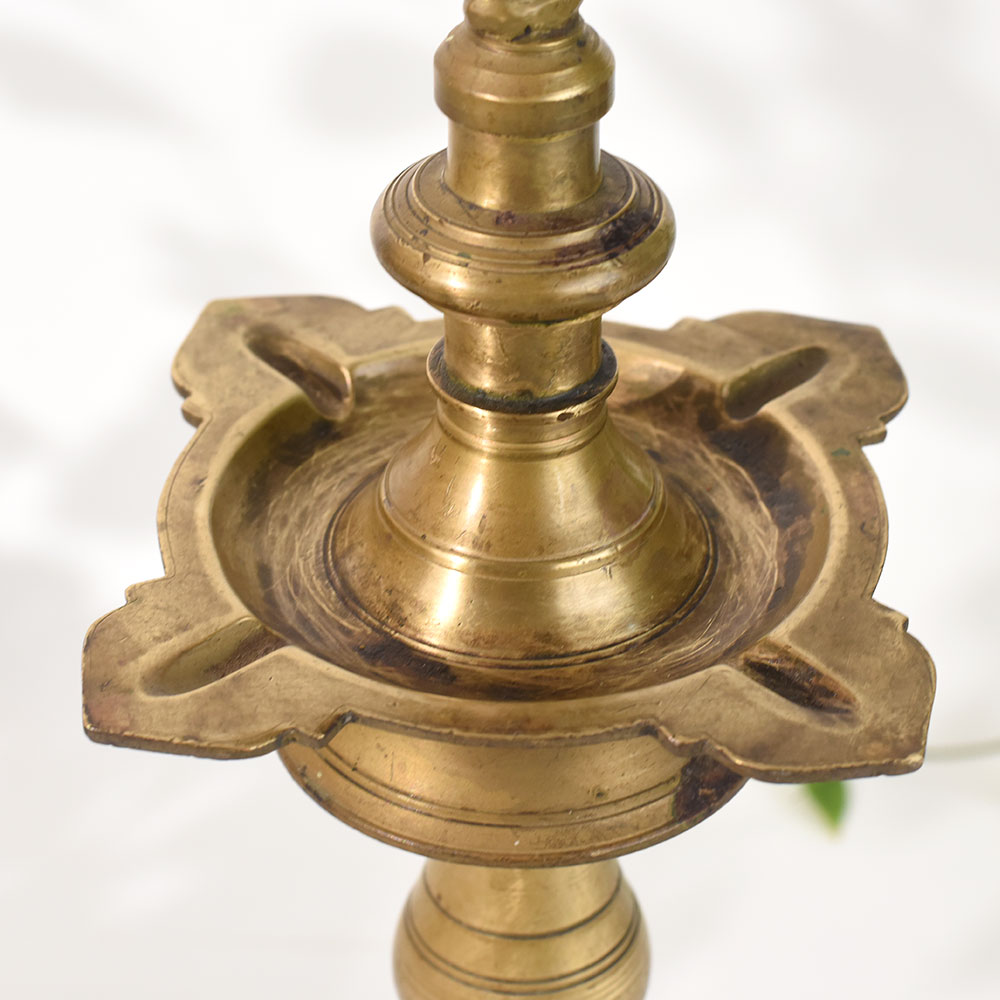 - Vintage brass lamp stand crafted in South Indian temple style