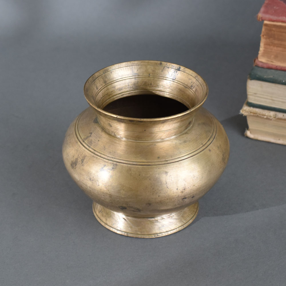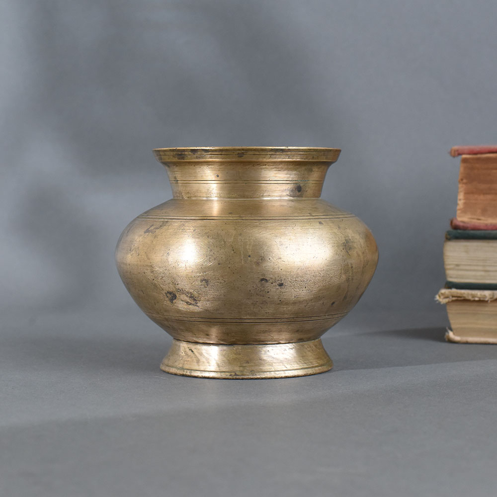 This exquisite antique brass holy water pot is a timeless piece of traditional Indian craftsmanship. Handcrafted from high-quality brass, it features a classic rounded body with a wide mouth and sturdy base, making it perfect for spiritual and decorative use. Traditionally known as a “Lota,” this pot has been used in temples and households for rituals, offering water during prayers, and auspicious ceremonies. Its natural patina and vintage finish add to its authenticity, making it a great addition to your home décor or spiritual space. Ideal for collectors and enthusiasts of antique metalware, this pot not only carries cultural significance but also serves as a beautiful reminder of India’s rich heritage. Whether used for daily puja, as a decorative centerpiece, or as a collectible item, this holy water pot embodies elegance and tradition in every detail.