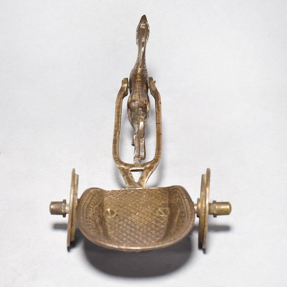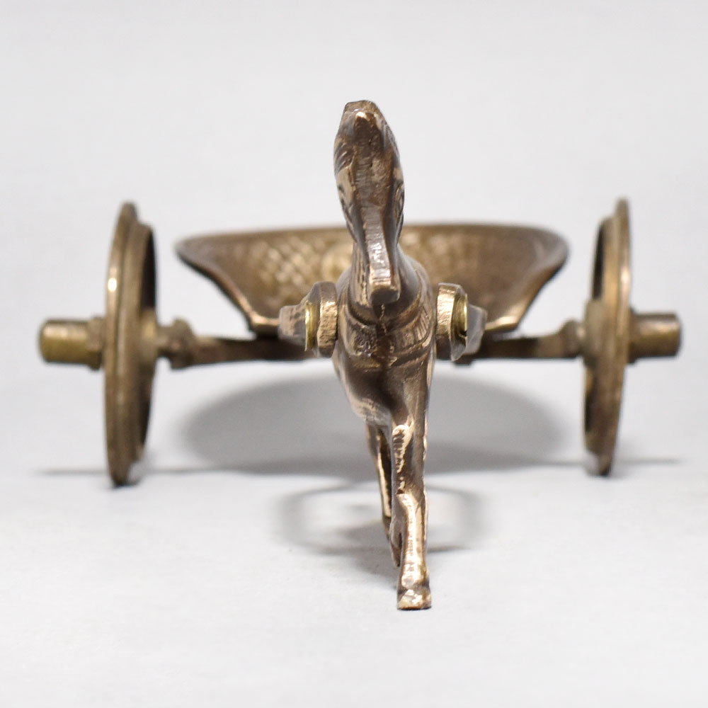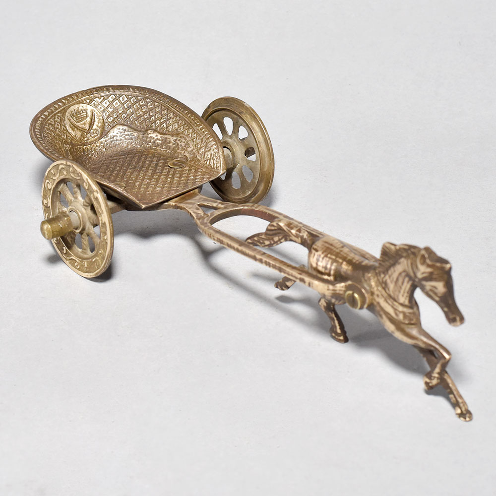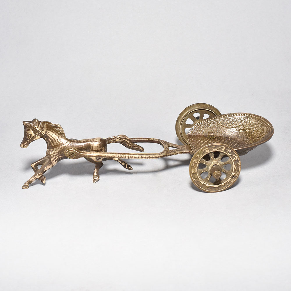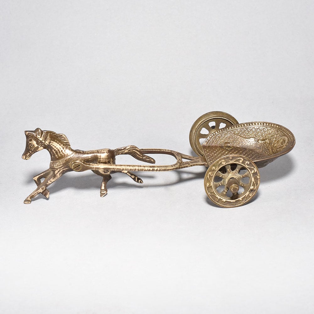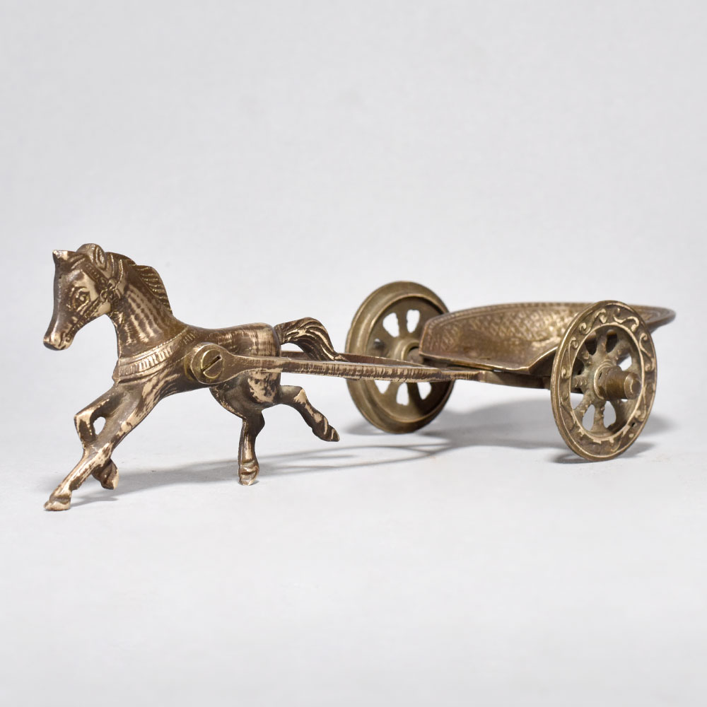 Behold the majestic power of ancient transport with this captivating Antique Horse-Drawn Chariot. Crafted from gleaming brass, this exquisite work of art captures the elegance and dynamism of a horse in full gallop, its rippling muscles conveying the raw energy of this ancient mode of travel. The intricate details of the chariot wheels seem to propel the piece forward, inviting you to imagine the thrill of riding into battle or racing across the open plains.This magnificent Antique Horse-Drawn Chariot is a stunning centerpiece that will transport you to another era. Imagine the wonder as guests admire its beauty, or the pride you'll feel displaying this captivating work of art in your home. Whether you're a history buff, an art aficionado, or simply someone who appreciates fine craftsmanship, this chariot is a treasure that will be cherished for generations. Brass construction for a timeless, premium look Detailed depiction of a horse in full gallop Chariot wheels appear to be in motion Captures the elegance and power of ancient transport