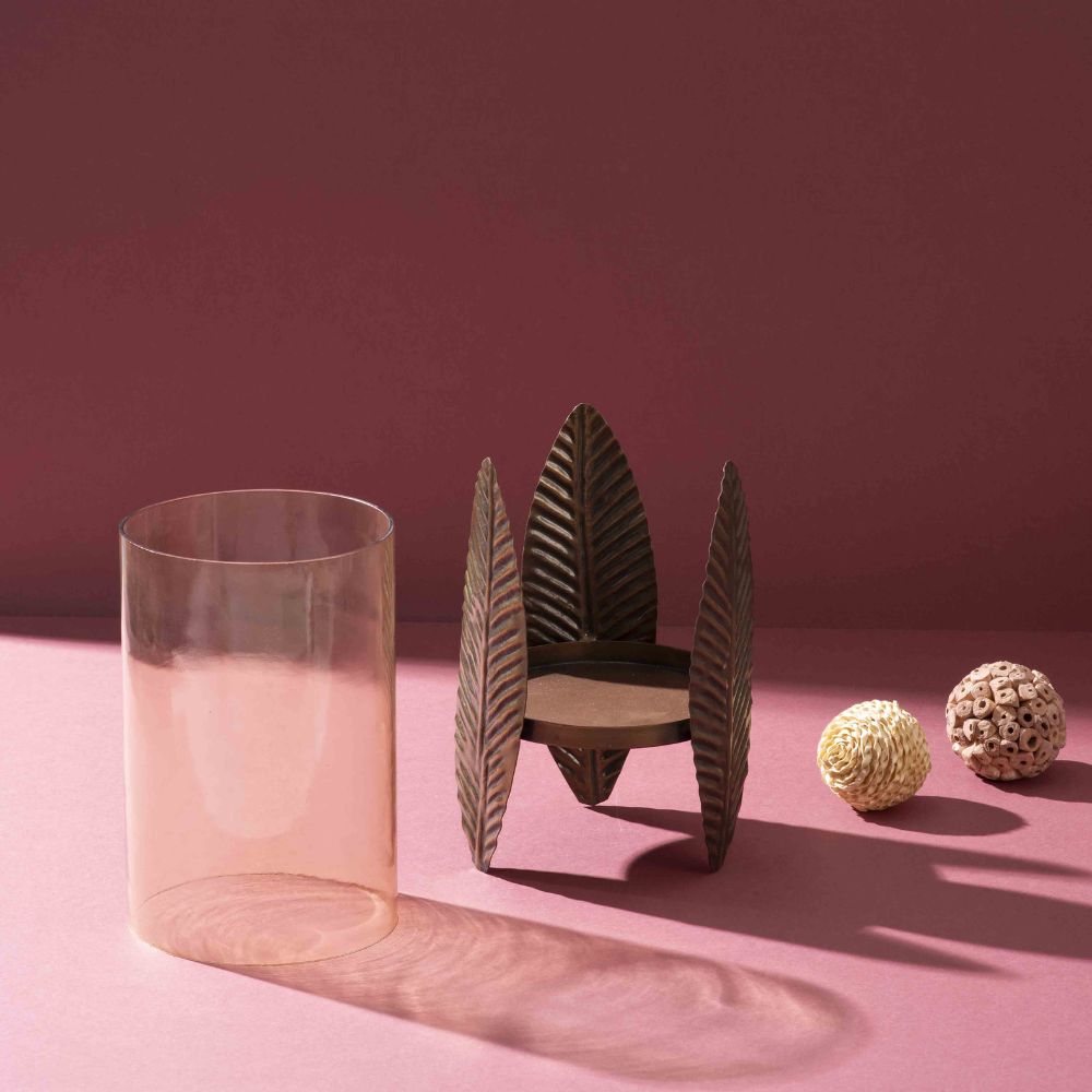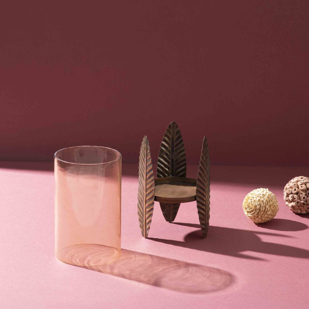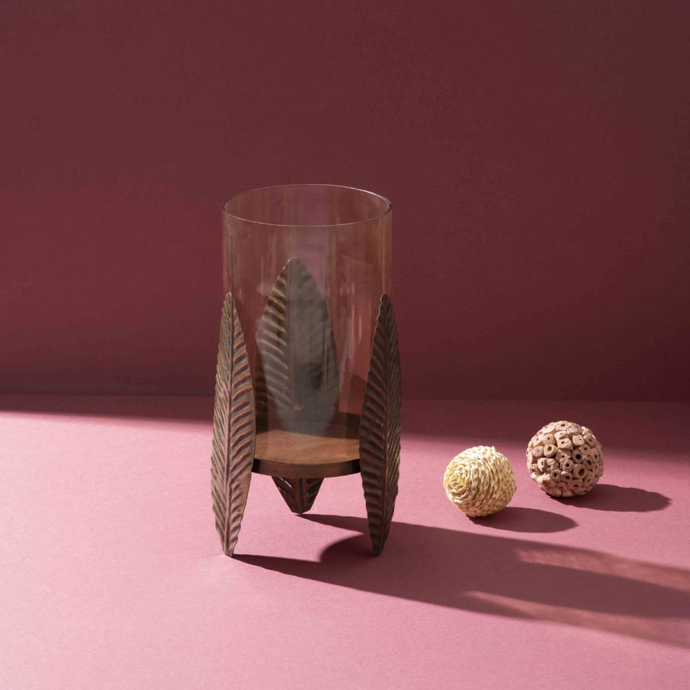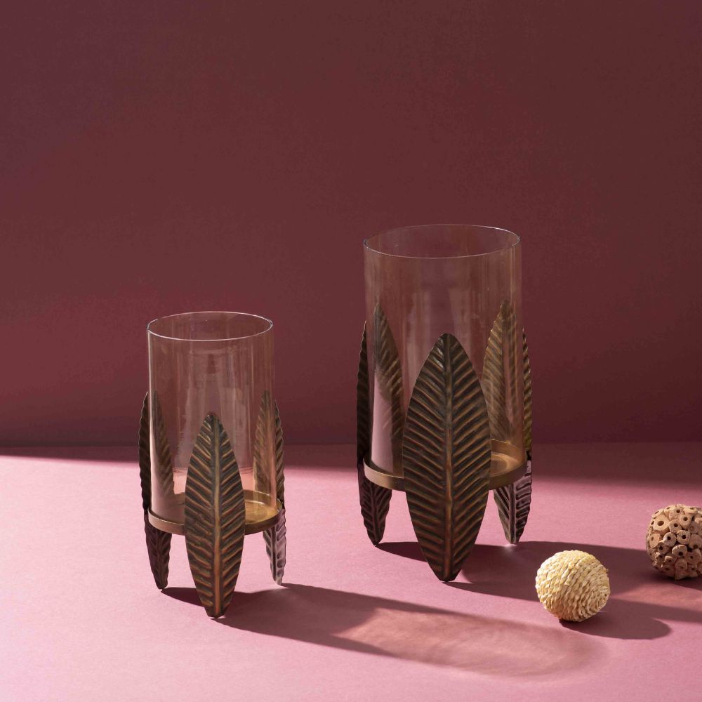 • Antique Brass Iron Candle Stand with Leaf Motif