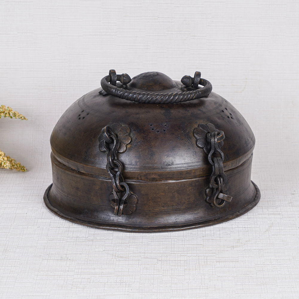 Buy a luxurious jewelry box online that combines timeless elegance with a touch of rustic charm. Its plain design is complemented by a captivating dark brown finish, making it a captivating piece for both decoration and functionality. The jewelry box features a convenient handle on the top, allowing you to effortlessly carry and transport your treasured possessions. It serves as an ideal storage solution for your precious jewelry and gemstones, keeping them organized and secure. Additionally, this versatile piece can enhance the ambiance of your home or office with its antique finish. Equipped with a sturdy latch, this jewelry box ensures the utmost protection for your valuables. Its aesthetic appeal is perfect for displaying at museums or exhibitions, attracting the attention of discerning customers. Furthermore, it makes an excellent gift for your loved ones on special or festive occasions, showcasing your thoughtfulness and admiration. Indulge in the charm of our luxury brass round jewelry box, an exquisite accessory that combines functionality and aesthetic allure effortlessly.