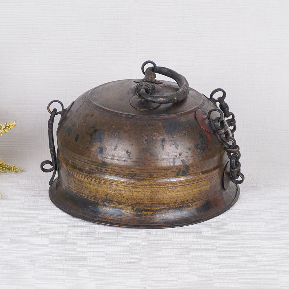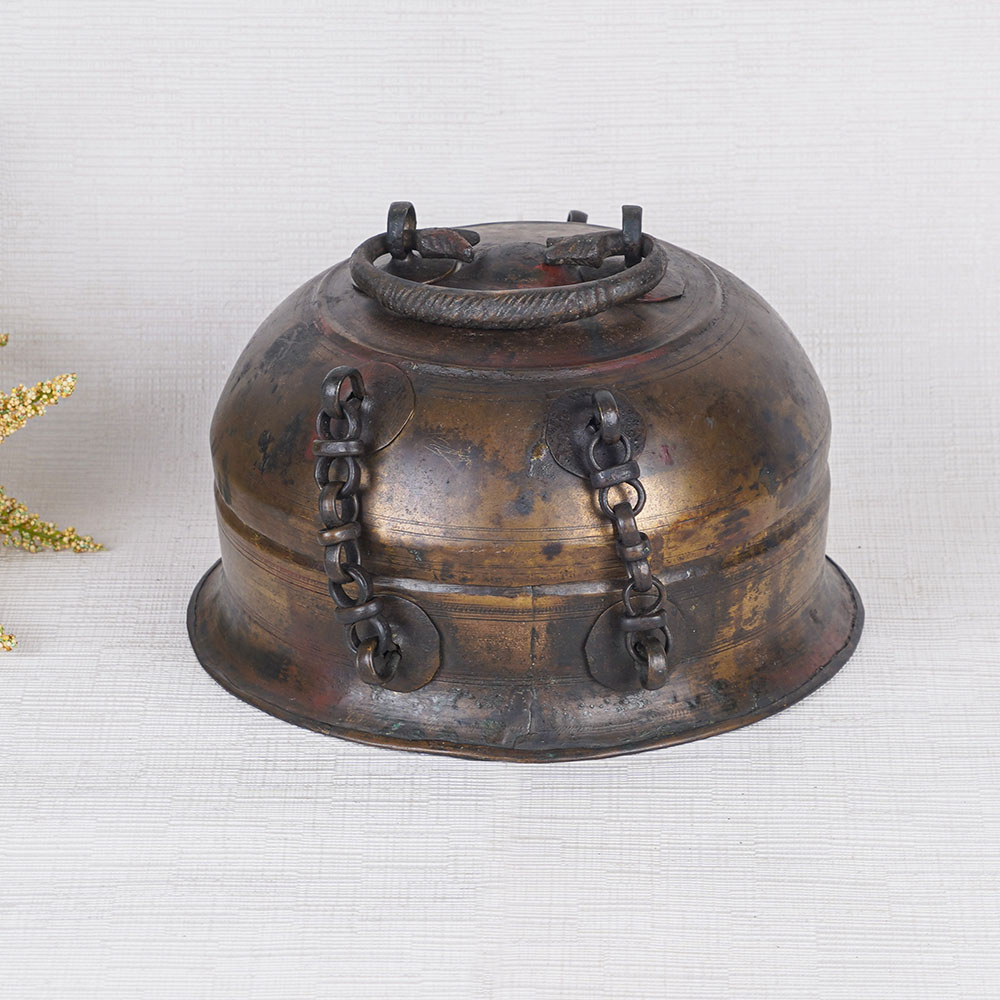 Buy a beautiful brass jewelry box online from our website and get it delivered at your doorstep. This stunning piece showcases a simple yet elegant design, accentuated by a captivating brown finish. Its aesthetic appeal makes it a captivating decorative item, perfect for enhancing the charm of any home or office setting. Designed with functionality in mind, this jewelry box features a convenient handle on the top, allowing for easy transportation and storage of your precious earrings, jewelry, or gemstones. The antique finish lends it a timeless appeal, adding a touch of sophistication to your personal space. Securing your treasures with care, the jewelry box is equipped with a sturdy latch, ensuring their safety and providing peace of mind. The exceptional craftsmanship and attention to detail make this box a standout item, suitable for display at museums or exhibitions, attracting the attention of discerning customers. As a gift, this jewelry box holds immense sentiment and charm. Ideal for special occasions or festive celebrations, it is sure to bring joy and admiration to your loved ones. Indulge in the best jewelry box for women and elevate your jewelry storage experience with this remarkable brass round jewelry box.