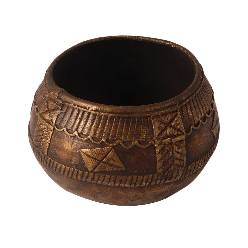 Add an alluring interior to your home with this brass rice measurement bowl. This bowl is engraved with a beautiful design that makes it a gorgeous decorative piece for your home, office, restaurant, hotel or bar. This peetal ka lota is handcrafted by skilled Indian artisans from pure brass, using traditional methods to leave a long lasting impression in the decoration. Buy this brass bowl online from our website and get it delivered right to your doorstep. This incredible artefact can be used as an indoor planter in your living room, hallway or bedroom to enhance the decor. An ideal gift for your friends, family or relatives on special and festive occasion to make their day.