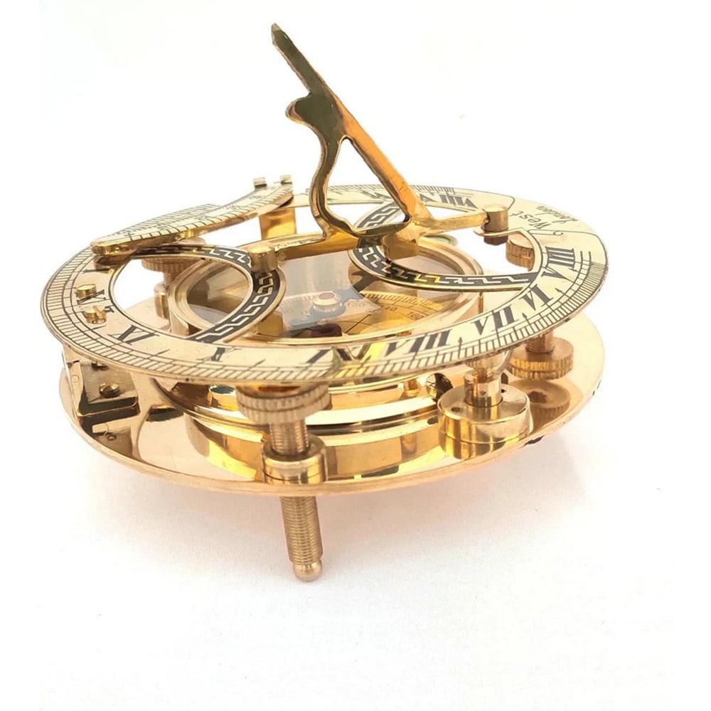 Antique Brass Sundial Compass Nautical Navigation Instrument