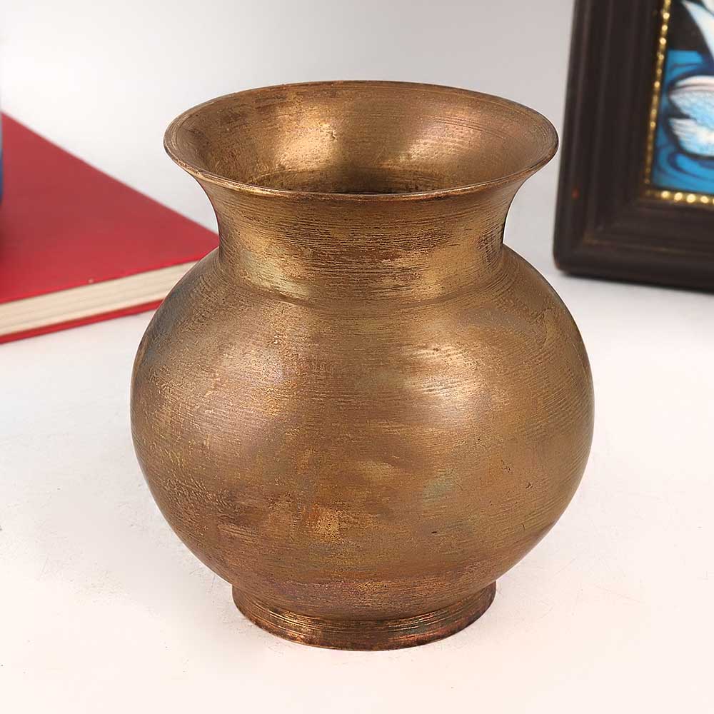 Buy a Brass Holy Water Pot online that is a timeless masterpiece handcrafted by highly skilled Indian artisans in a stunning antique brown finish. Made with high-quality brass, this elegant lota is a perfect addition to any home, office, restaurant, hotel, or cafe, adding a touch of spirituality and cultural charm to any space. Versatile in its purpose, this holy water pot can be a remarkable decorative item, effortlessly enhancing the ambiance of any exhibition or vintage collection. Additionally, it holds a special significance for religious practices, as it can be used for offering water to the revered Shivling at temples and to pay respects to the Sun God. Beyond its religious and decorative significance, placing the water pot in the north or east direction of a room is believed to radiate positive energy, fostering a harmonious atmosphere in the surroundings. This Brass Holy Water Pot also makes for an exceptional gift option for your loved ones on special, festive, or auspicious occasions, symbolizing blessings, prosperity, and an appreciation of fine craftsmanship.