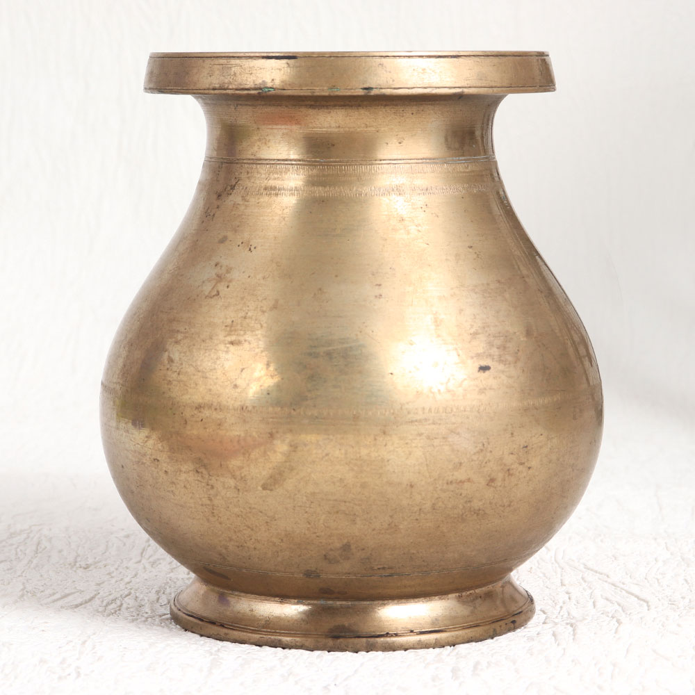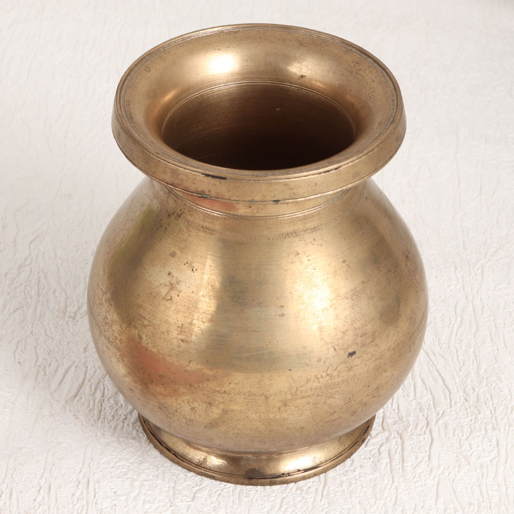 This Vintage Brass Holy Water Pot is meticulously crafted in an antique brown finish by highly skilled and experienced Indian artisans steeped in the tradition of South Indian Art. This exquisite piece is a testament to their craftsmanship, showcasing the enduring beauty of high-quality brass. This versatile artefact seamlessly blends tradition and aesthetics, making it a splendid addition to various settings. Whether adorning your home, office, restaurant, hotel, cafe, or shop, it exudes an air of sophistication and charm. Use it as a captivating flower pot, or infuse spirituality into your space during havan, prayer, or temple rituals. Perfect for collectors and exhibition enthusiasts, this brass holy water pot is a captivating addition to your vintage collection, inviting admiration and sparking conversations about its heritage. It also serves as an ideal gift for your loved ones on special, festive, or auspicious occasions, symbolizing your appreciation for both tradition and craftsmanship.