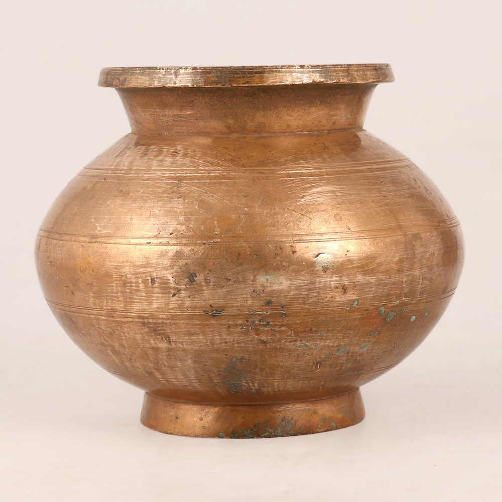 Immerse yourself in the spiritual essence of Hindu rituals with this exquisite Brass Holy Water Pot, an essential element of devotion and positive energy. Crafted with precision and care by skilled artisans from South India, this handcrafted lota resonates with ancient traditions. Made from premium brass, its antique brown finish lends an air of timeless elegance, while its intricate detailing captures the eye. This sacred vessel serves myriad purposes in Hindu practices. It holds holy water for rituals, havans, and for offering water to the Lord Shiva and the Sun God. Its versatile design extends beyond worship, making it a charming addition to any space. Use it to spread positive energy by placing it in your home, office, restaurant, cafe, or shop. Adorn it with flowers for a touch of elegance during festive occasions. Elevate your collection by displaying this Brass Holy Water Pot in exhibitions or incorporating it into your vintage treasures. Additionally, it's a thoughtful gift for your loved ones on special and auspicious occasions, serving as a symbol of your appreciation for tradition and spirituality.