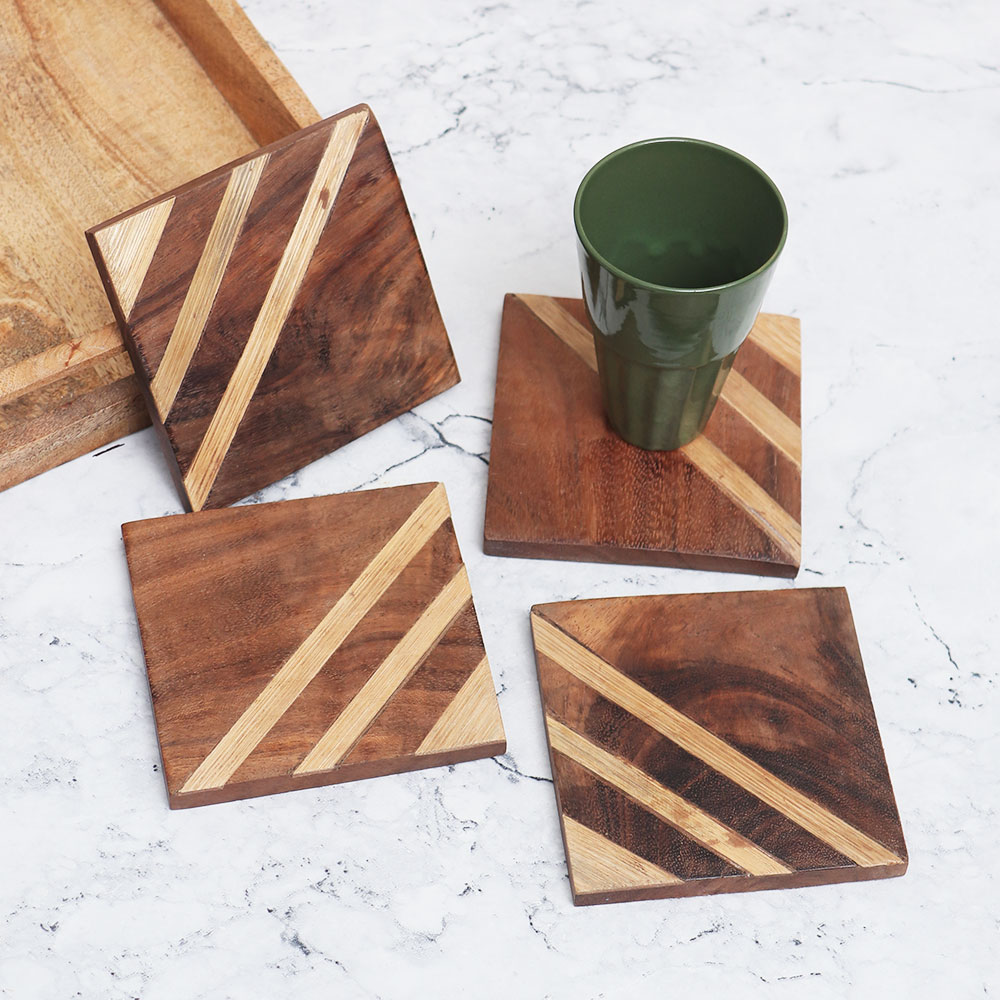 Buy a Wooden Tea Coaster Set online which is a true masterpiece crafted with utmost care and precision by professional Indian artisans. Made from high-quality wood, these square-shaped coasters boast a timeless appeal that is sure to enhance the aesthetics of any space. Each coaster is meticulously handmade, ensuring exceptional attention to detail and a unique touch that sets it apart. With an antique brown finish, these coasters not only serve a practical purpose but also double as elegant decorative pieces for your home or office. Protect your surfaces from unsightly stains caused by water, tea, juice, or coffee glasses, while adding a touch of sophistication to your surroundings. Ideal for use in homes, offices, restaurants, hotels, or cafes, our Wooden Tea Coaster Set is a versatile addition to any setting. It also makes for a thoughtful gift for your loved fours on special or festive occasions, combining functionality with an elegant aesthetic.