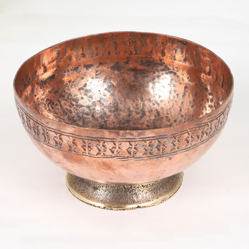 Immerse your space in timeless elegance with our exquisite Vintage Copper Bowl. Crafted by highly skilled artisans in the intricate tradition of Islamic Art, this piece is a testament to the rich heritage of handmade craftsmanship. The bowl boasts a warm antique brown finish that accentuates the meticulous engravings adorning its surface, telling stories of a bygone era. Fashioned from high-quality copper, this versatile piece serves as a captivating decoration for homes, offices, restaurants, hotels, or cafes. Its multifunctional design allows it to transform into an indoor flower pot, adding a touch of nature to your surroundings. This vintage masterpiece isn't just a decor item, it's a collectible that breathes life into any setting. Its charm extends beyond aesthetics, making it a thoughtful gift for your loved ones during special, festive, or auspicious occasions.