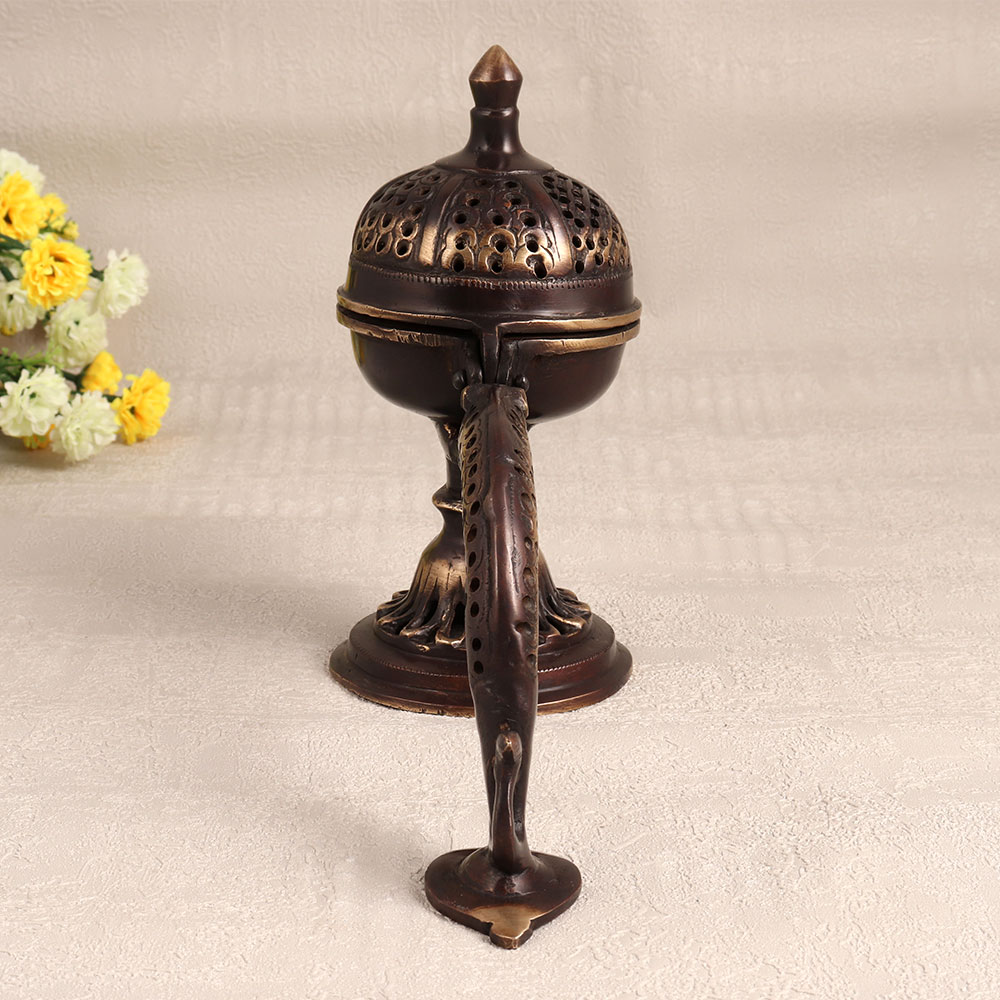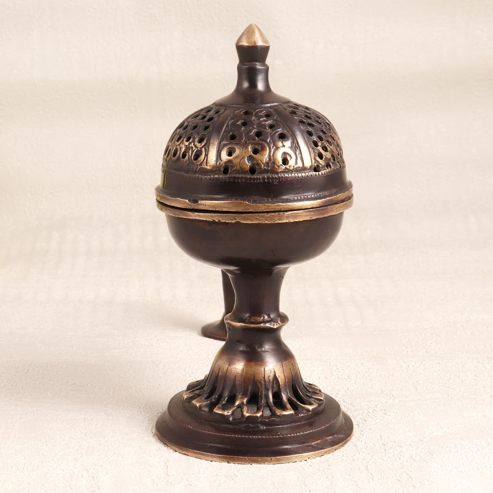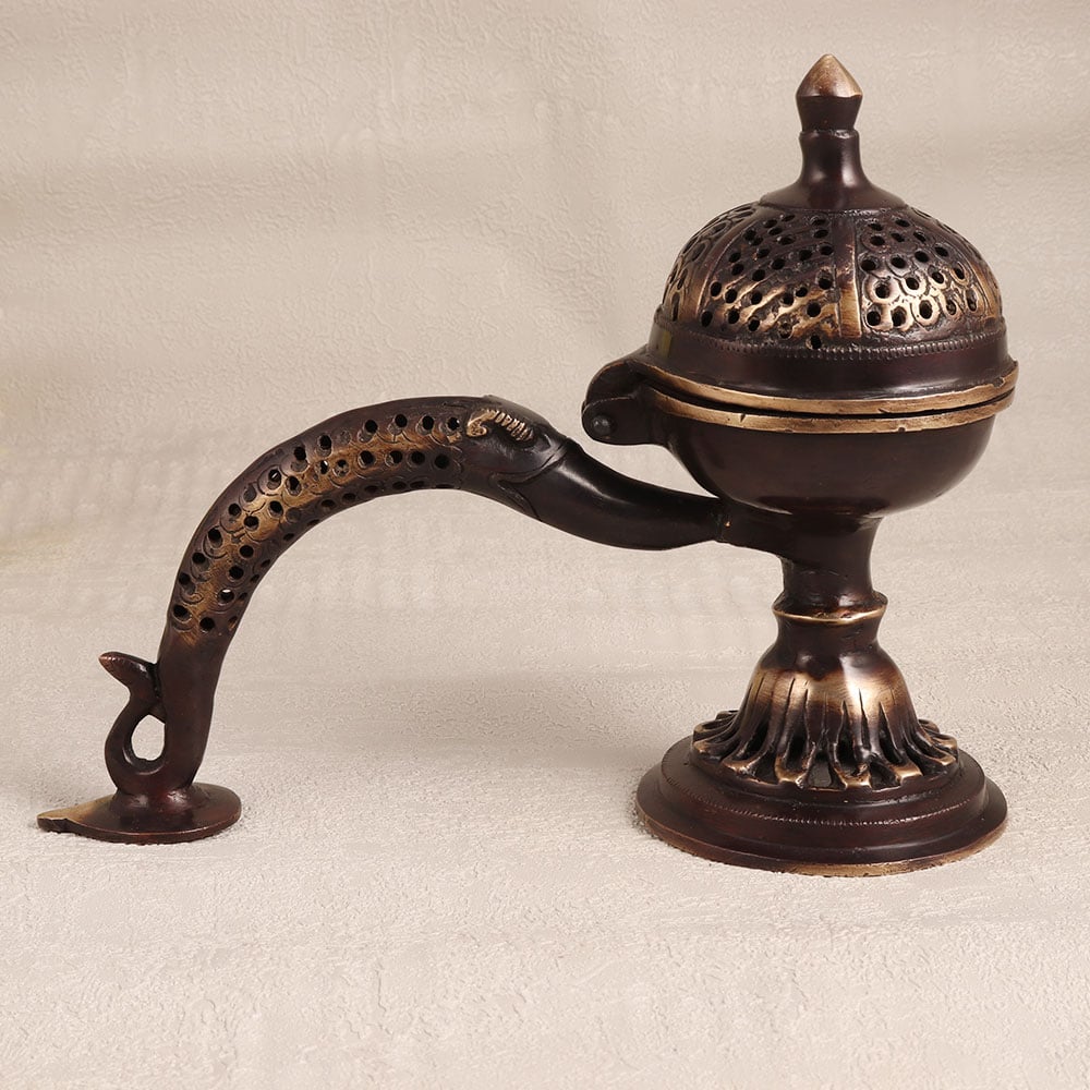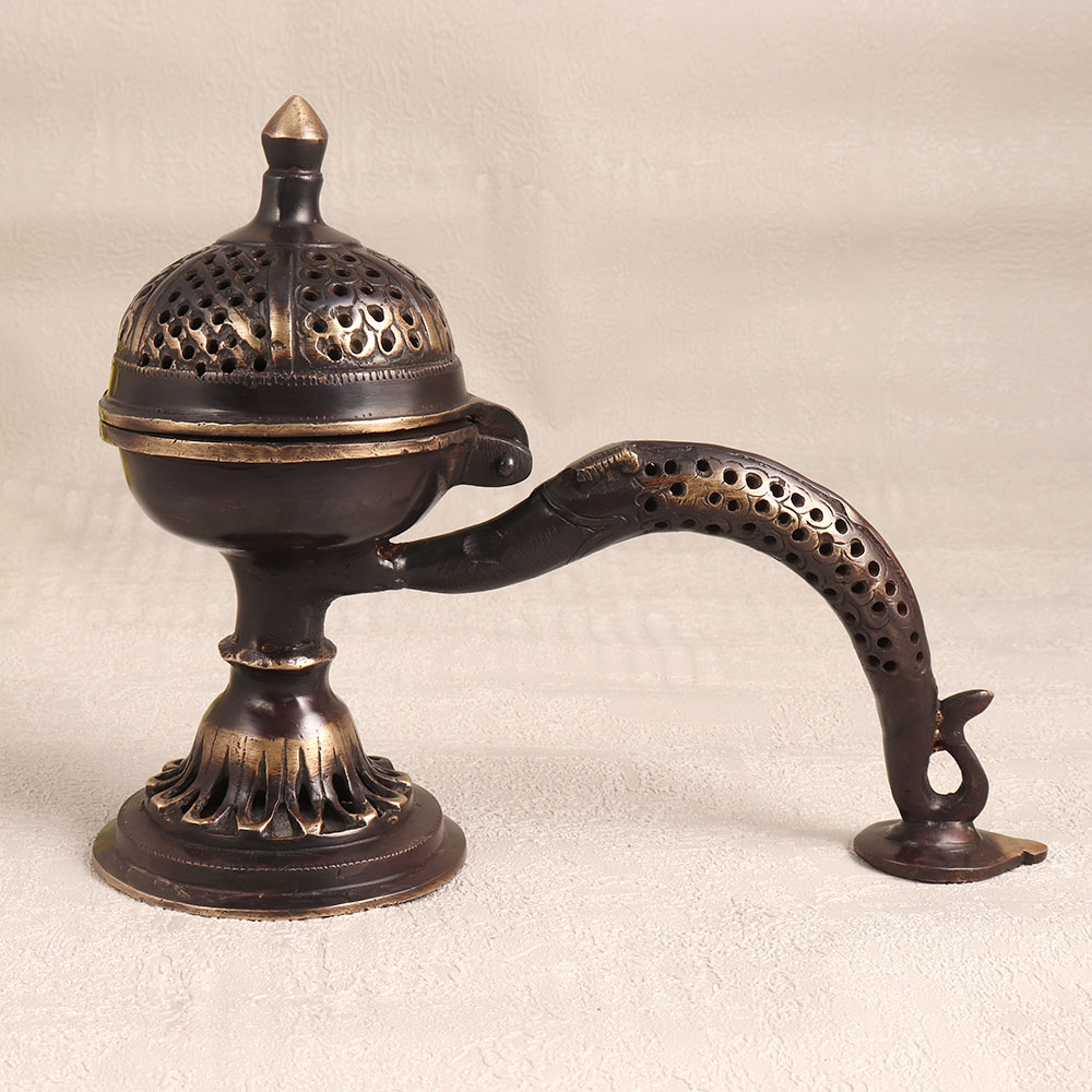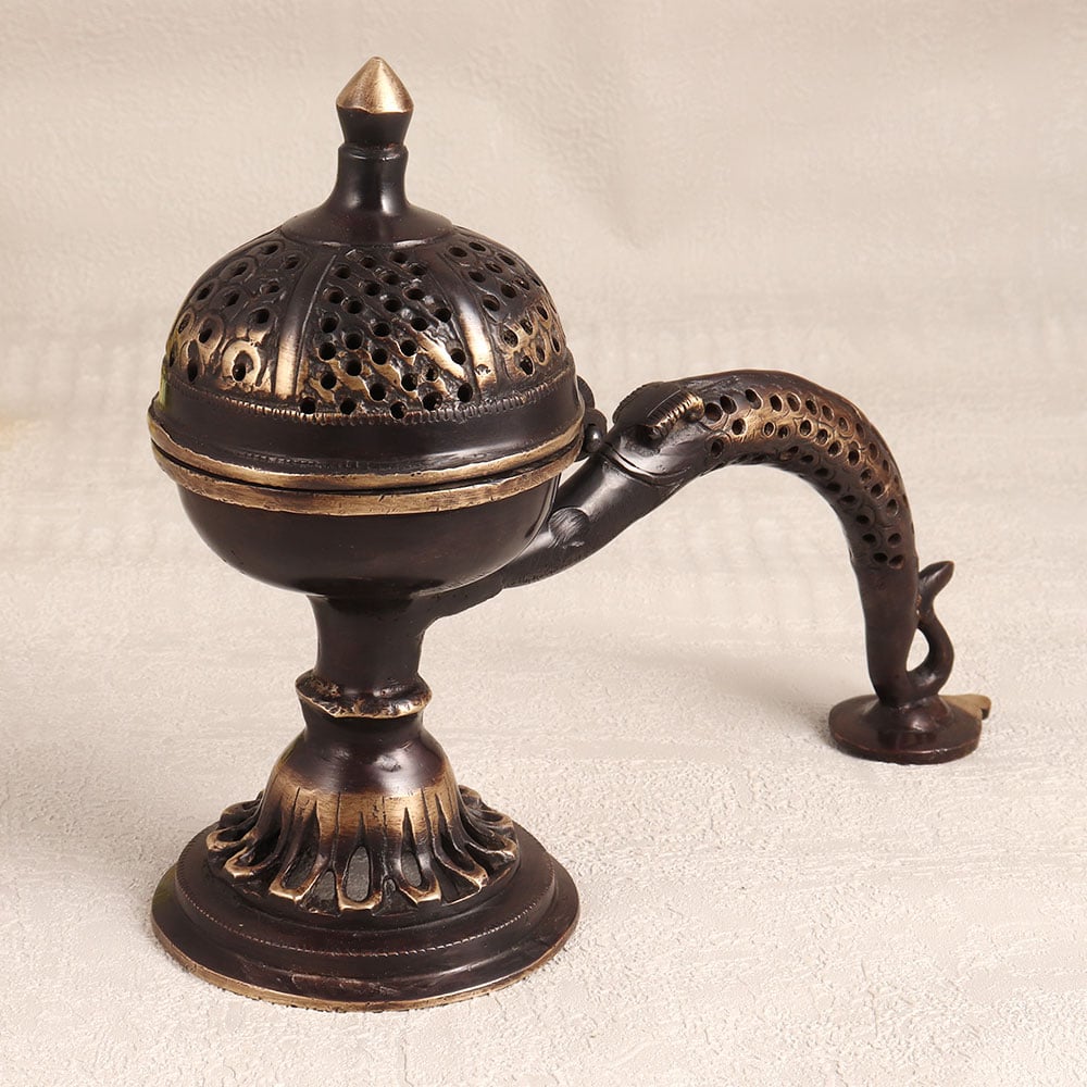 Buy a Brass Camphor Burner or Aarti Lamp online and get a hassle free delivery at your doorstep. Handcrafted by skilled Indian artisans, this stunning piece showcases their dedication to craftsmanship and attention to detail. The antique brown finish adds a touch of vintage charm that seamlessly complements any decor. Made from high-quality brass, this burner exudes elegance and durability, promising to last for generations. Its long handle allows for safe and convenient use, whether in the comfort of your home, the serenity of your office, the welcoming ambiance of a hotel, the cosy atmosphere of a cafe, or the warm surroundings of your shop or restaurant's prayer room. This piece serves a dual purpose, as it not only functions as a beautiful decorative item but also as a source of positive energy, spreading tranquillity and serenity in its surroundings. Whether you're celebrating a special occasion, a festive festival, or an auspicious moment, this Brass Camphor Burner makes for an ideal gift to your loved ones, symbolizing your well wishes and blessings.