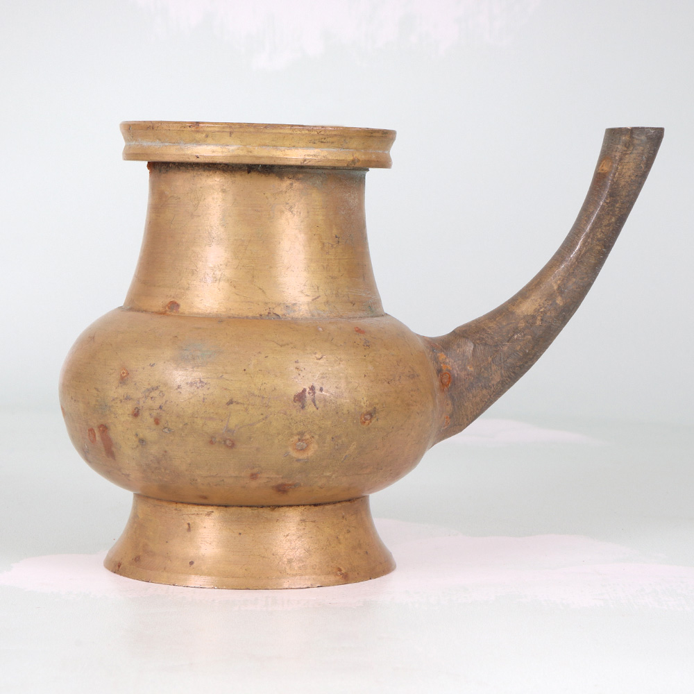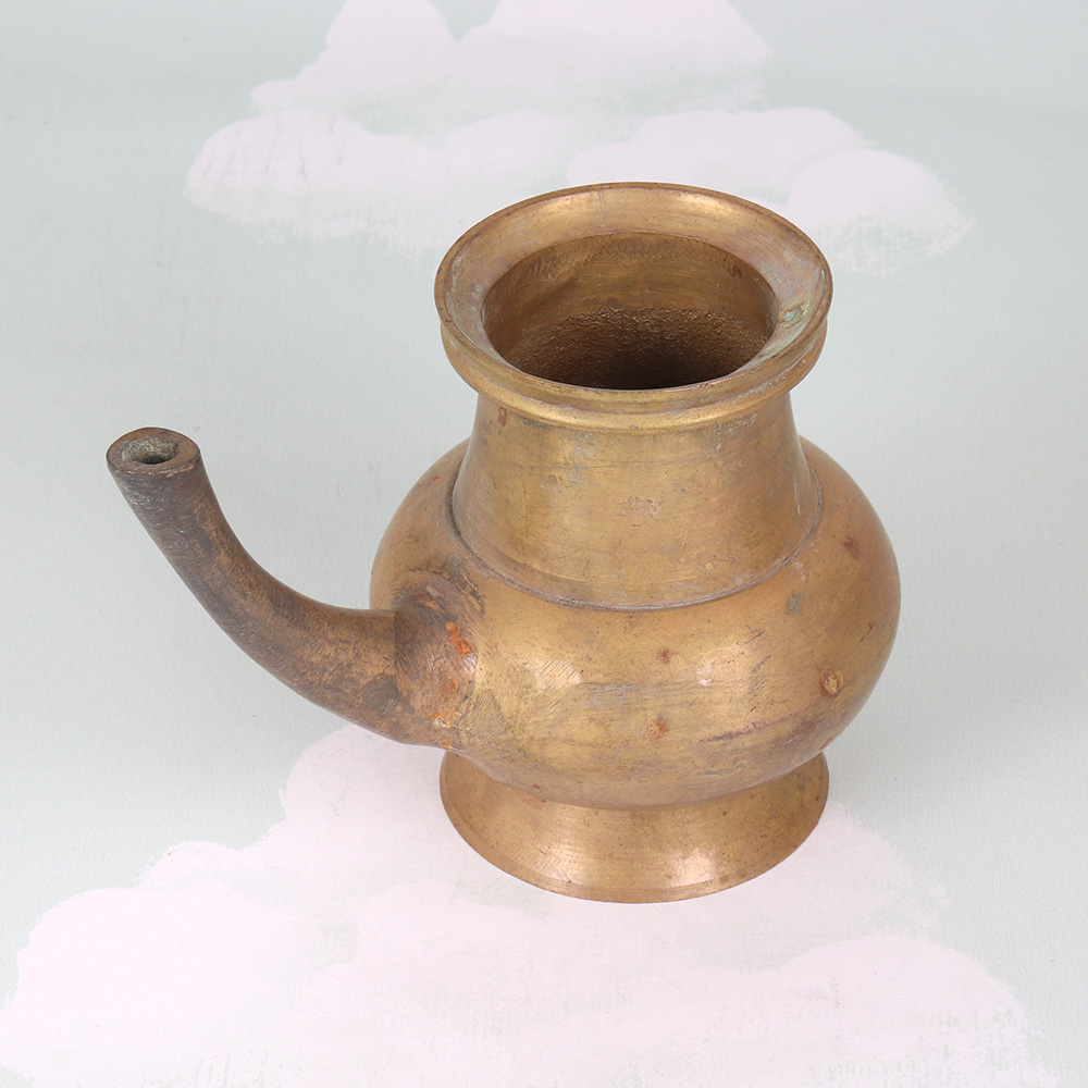 Unlock the timeless allure of South Indian sacred tradition with this stunning vintage brass holy water pot. Crafted with meticulous attention to detail, this heirloom-quality piece emanates a captivating aura that will transport you to the heart of ancient spiritual practices. Infuse your sacred space with the serene energy of this holy water pot. Its elegant silhouette and time-honored craftsmanship make it a breathtaking centerpiece that will elevate your meditation, prayer, and cleansing rituals. Whether you're looking to deepen your personal spiritual journey or seeking a thoughtful gift for a loved one, this exquisite vessel will become a cherished companion on the path of enlightenment. Bring the revered traditions of South India into your home and let this holy water pot inspire a profound connection to the divine. Experience the transformative power of this timeless artifact as you incorporate it into your daily spiritual practice and create lasting memories steeped in cultural heritage.