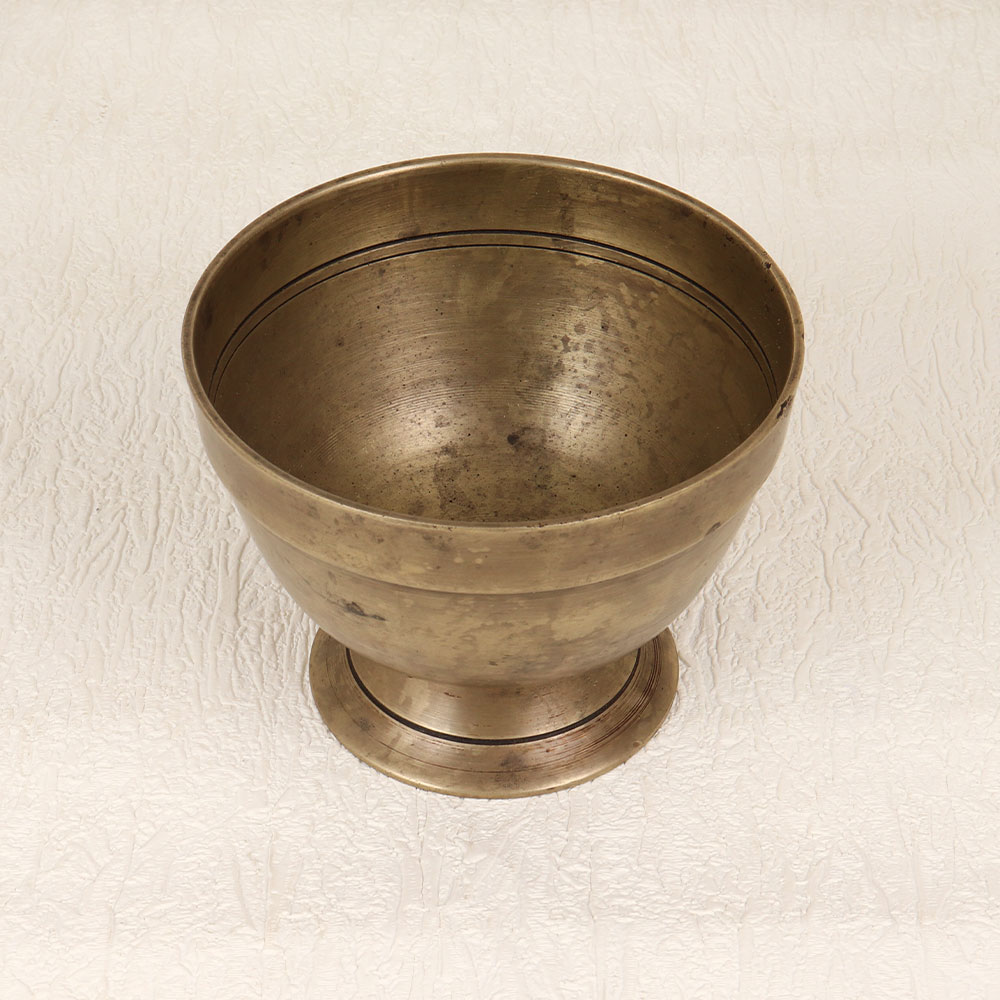 Immerse yourself in the rich cultural tapestry of ancient traditions with this exquisite Vintage Brass Kumkum Bowl with Base Stand. Crafted by skilled Indian artisans in the timeless style of South Indian art, this piece encapsulates the essence of spirituality and craftsmanship. Made from high-quality brass, its lustrous antique brown finish adds an authentic touch, invoking a sense of nostalgia and reverence. Designed for use during prayers, rituals, and havans, this kumkum bowl elegantly holds the sacred tilak, creating a harmonious ambiance in any prayer room. The intricate handmade details showcase the dedication of the artisans, ensuring a unique and authentic piece for your collection. Versatile in its application, this vintage brass bowl seamlessly blends into diverse settings, be it at home, office, restaurant, hotel, or café prayer rooms. Beyond its religious significance, it serves as a captivating decor piece, lending an air of sophistication to any space. An ideal gift for your loved ones on special, festive, or auspicious occasions, this vintage brass kumkum bowl transcends its utilitarian purpose, becoming a cherished artifact that symbolizes heritage, spirituality, and enduring craftsmanship.