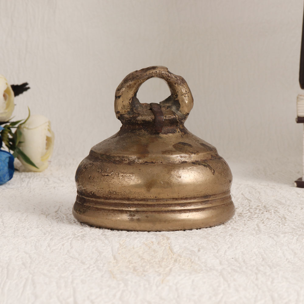This Vintage Bell Metal Bell with a charming hanging loop is meticulously crafted in an antique brown finish. Handmade by talented Indian artisans in the traditional Himachal Art style, this bell embodies the rich heritage and craftsmanship of India. Crafted from high-quality bell metal, this bell not only boasts a rustic aesthetic but also resonates with a melodious chime that adds a touch of nostalgia to any space. Its versatile design makes it suitable for various settings, be it your home, office, restaurant, hotel, cafe, or shop. It effortlessly complements both contemporary and vintage themes. This beautiful bell serves multiple purposes, from a decor accent to a temple hanging or a prayer room adornment. Its timeless elegance can also grace exhibitions, showcasing its intricate design and cultural significance. Additionally, it makes for a thoughtful and cherished gift for your loved ones on special, festive, or auspicious occasions, symbolizing blessings, peace, and prosperity.