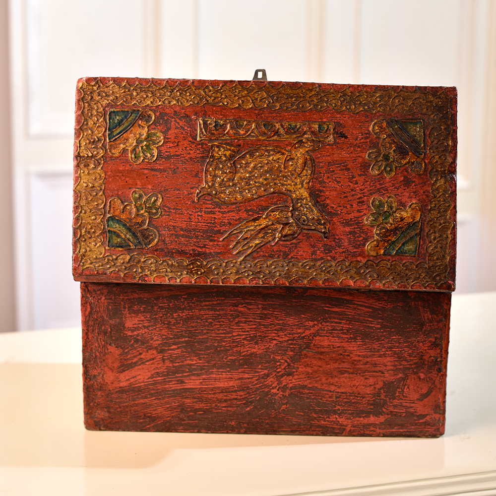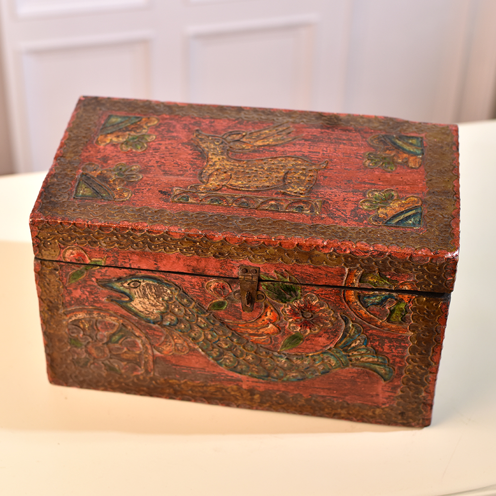 Immerse yourself in the charm of this exquisite wooden box which is a testament to the artistry of highly talented Indian artisans. Handmade with precision and care, the box features intricate engravings of delicate fish and blooming florals, creating a harmonious blend of nature's beauty. Its antique brown finish adds a touch of timeless elegance, invoking a sense of nostalgia. Crafted from high-quality wood, this box transcends functionality as a versatile storage piece. With a secure latch, it becomes a sanctuary for your cherished jewelry or other small treasures. Its artisanal allure extends beyond personal use - gracefully exhibited at an exhibition, it captures attention and admiration. Elevate your gifting experience by presenting this masterpiece to your loved ones on special or festive occasions.