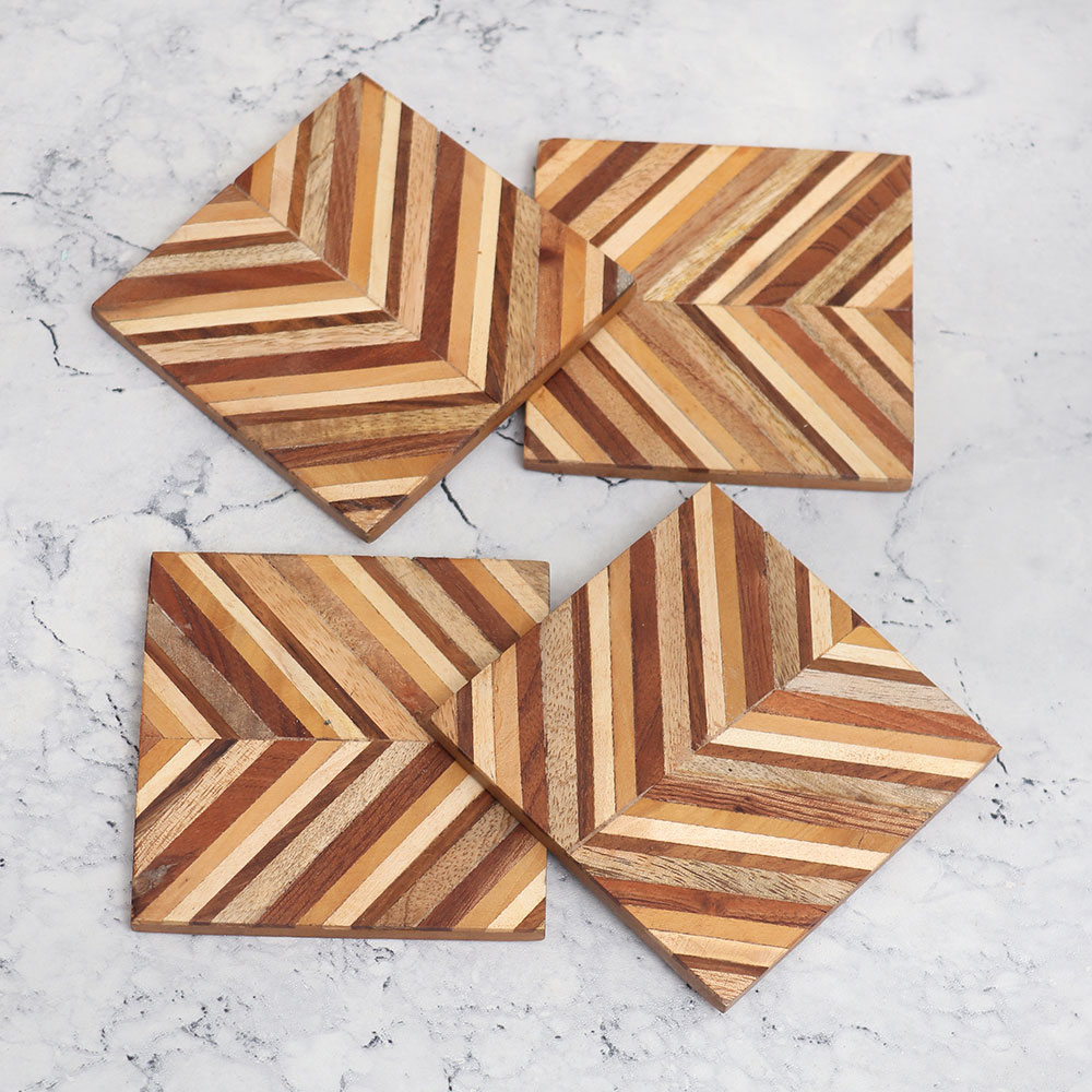 Buy a best wooden coaster set online that is a testament to fine craftsmanship and exquisite design. Handmade by highly skilled and experienced Indian artisans, this Pack of four square-shaped coasters is a true work of art. Carefully crafted from high-quality wood, these coasters showcase a stunning array of different shades of brown in an antique finish, adding a touch of elegance to any space. Not only are these coasters visually appealing, but they also serve a practical purpose. Use them to hold your water, tea, juice, or coffee glasses at home, office, restaurant, hotel, or cafe, ensuring your surfaces remain stain-free. The smooth surface of these coasters guarantees a sturdy and stable hold, protecting your furniture from unsightly marks. Moreover, these coasters make for an ideal gift for your loved fours on special or festive occasions. With their impeccable craftsmanship and timeless aesthetic, they will surely impress and delight.