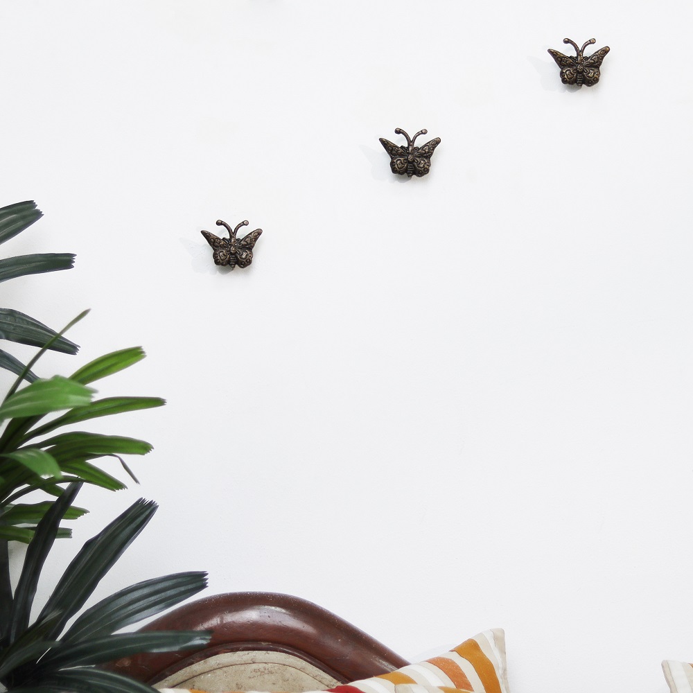 Antique Butterfly Metal Wall Hooks Pack of 3