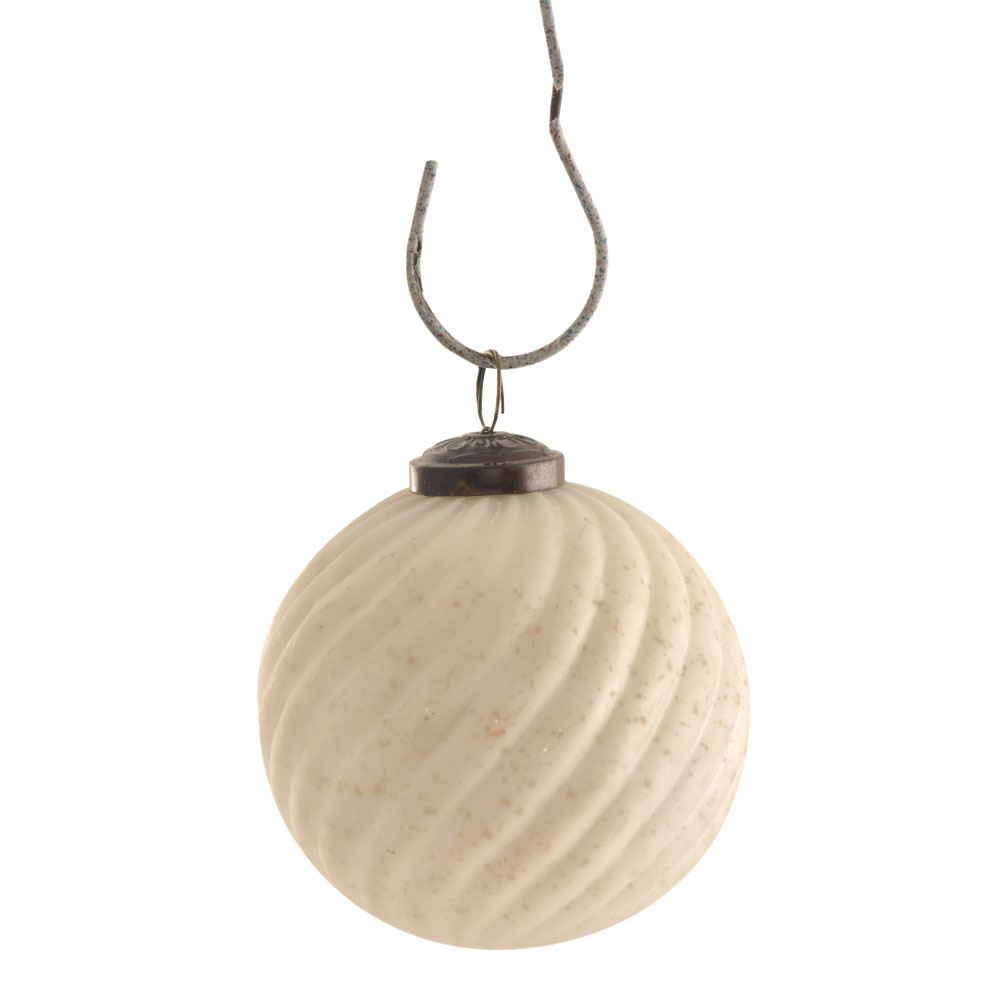 The smooth, round shape paired with the delicate wave pattern makes this ornament a striking addition to any holiday setting. The antique cream hue imparts a vintage touch, harmonizing beautifully with both traditional and contemporary Christmas décor styles.