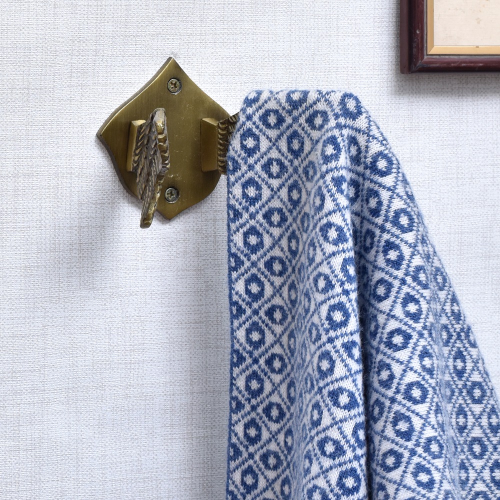 To install, mark the position on your wall, drill a pilot hole, insert a wall plug, and secure the hook with a screw. The mounting system is subtly integrated for a clean look. Tools needed: drill, screwdriver, wall plug.