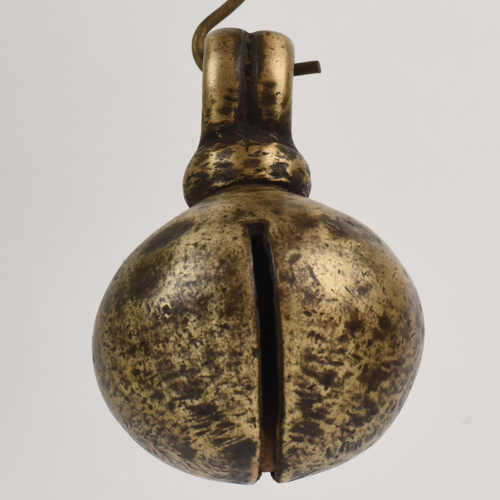 This vintage handmade animal bell is a beautiful representation of handcrafted rural artistry, made from durable bell metal and shaped using traditional methods. Historically used to track cattle and goats, it continues to produce a resonant chime thats both functional and charming. Its vintage patina, textured design, and ornate top loop give it an authentic rustic character perfect for farmhouse decor, garden accents, or antique collections. Whether displayed indoors or used outdoors, this handcrafted bell brings a sense of heritage and craftsmanship to any space. It serves as a unique decor element, a meaningful gift, or a functional tool for animals. With its blend of durability, beauty, and history, this handmade cow bell enriches any environment with vintage charm.