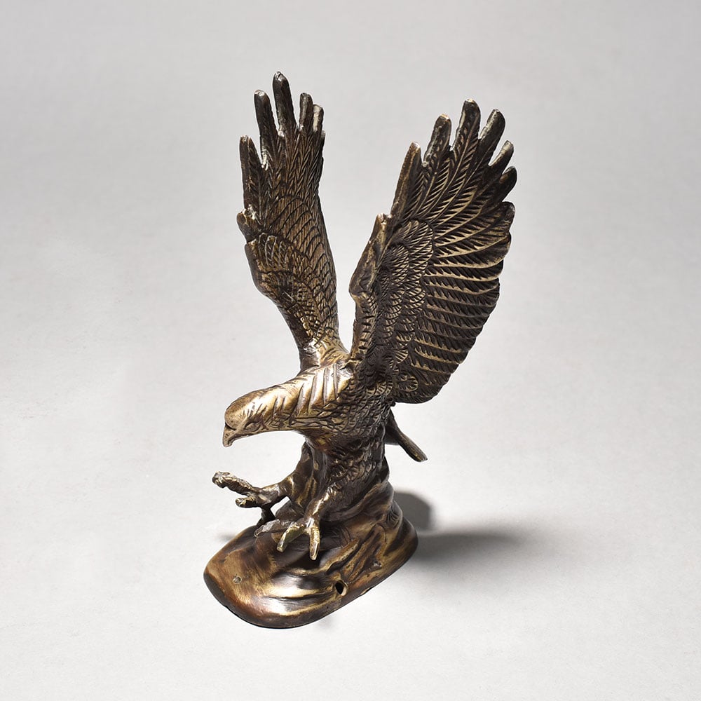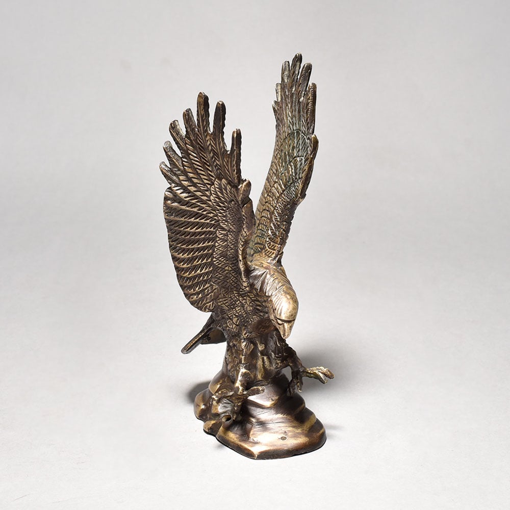 This captivating Antique Finish Eagle Standing In English Art piece is a testament to the enduring beauty of traditional English craftsmanship. Meticulously crafted with an exquisite antique finish, this eagle sculpture exudes a sense of timeless elegance that will elevate the ambiance of any room or outdoor area. Whether displayed indoors as a striking focal point or placed in your garden to command attention, this piece is built to withstand the elements while adding a touch of refined charm. Its durable construction ensures it will continue to captivate onlookers for years to come, making it a cherished addition to your home or a thoughtful gift for the art enthusiast in your life. Regal and Resilient: Discover the Timeless Allure of the Antique Finish Eagle Standing In English Art