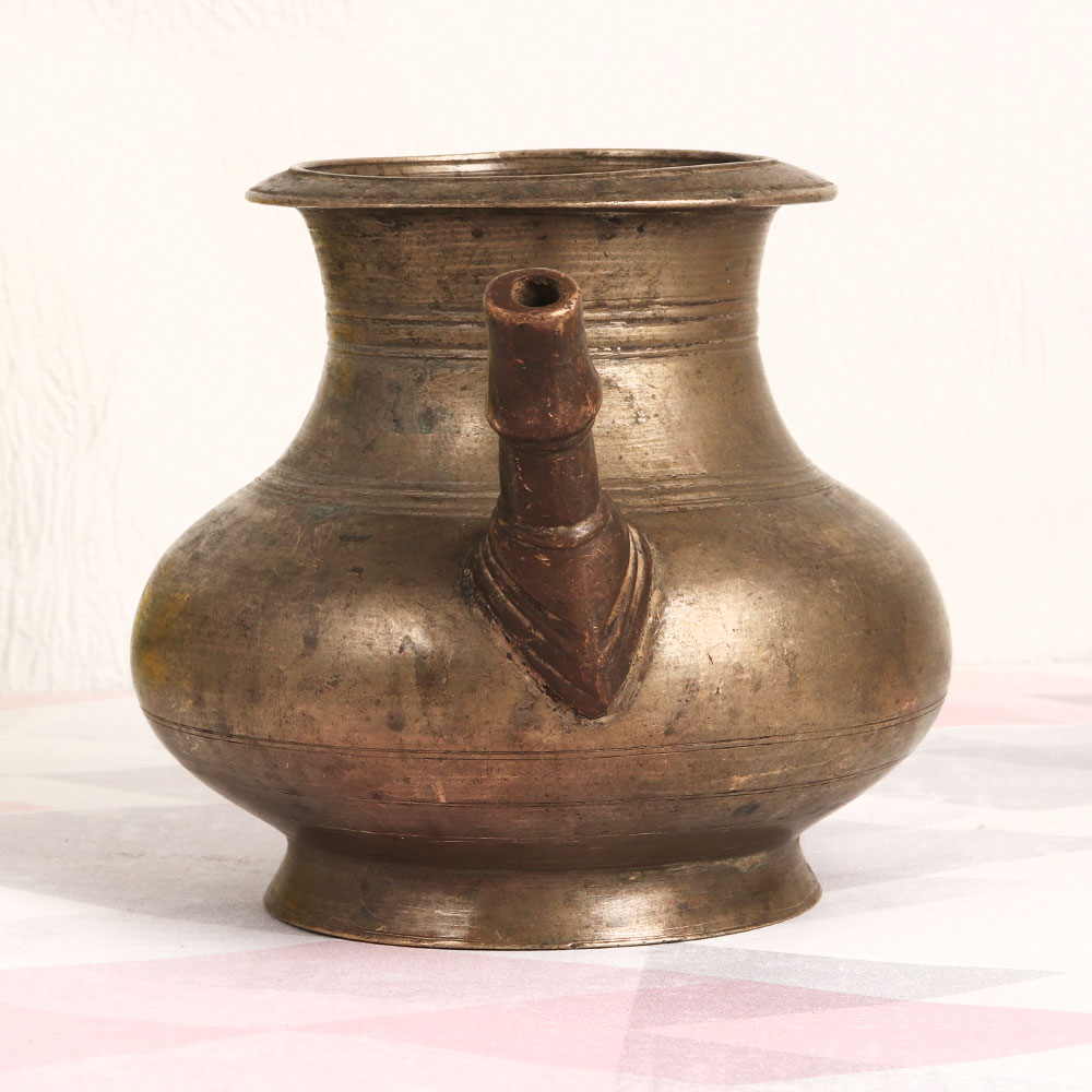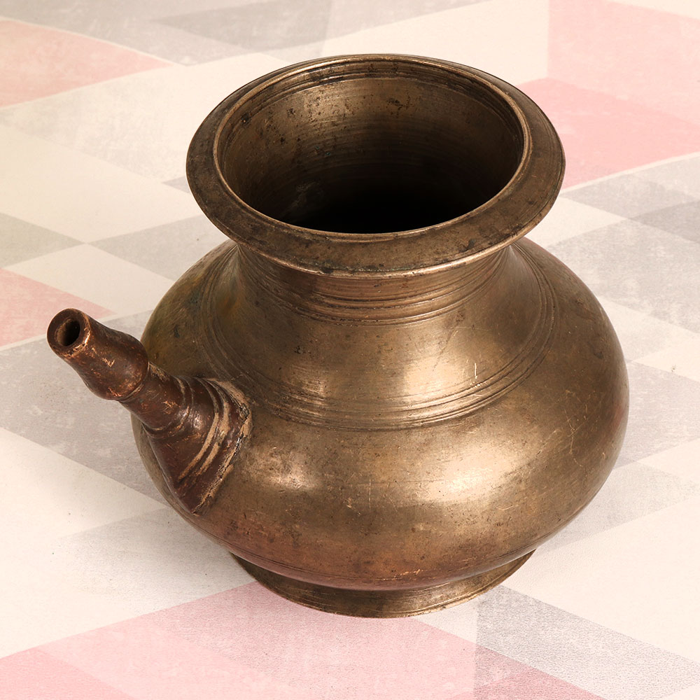 Decorate your home interior with a touch of timeless elegance with our Vintage Brass Holy Water Pot with Spout. Meticulously handcrafted by professional Indian artisans, this exquisite piece reflects the artistry of South Indian craftsmanship. Crafted from high-quality brass and finished in an antique brown patina, this pot exudes a sense of heritage and tradition. Its versatile design allows it to seamlessly blend into various settings, making it a versatile addition to your home, office, restaurant, hotel, cafe, or shop. Not only does it serve as a stunning indoor flower pot, but it also embodies sacred significance. This pot is traditionally used during havans, rituals, and auspicious occasions to serve holy water to devotees, infusing an aura of sanctity into any environment. Furthermore, it's a perfect addition to your vintage collection, symbolizing the rich cultural heritage of India. It makes for a thoughtful and meaningful gift for your loved ones on special, festive, or auspicious occasions, ensuring that they receive a unique and cherished piece of history.