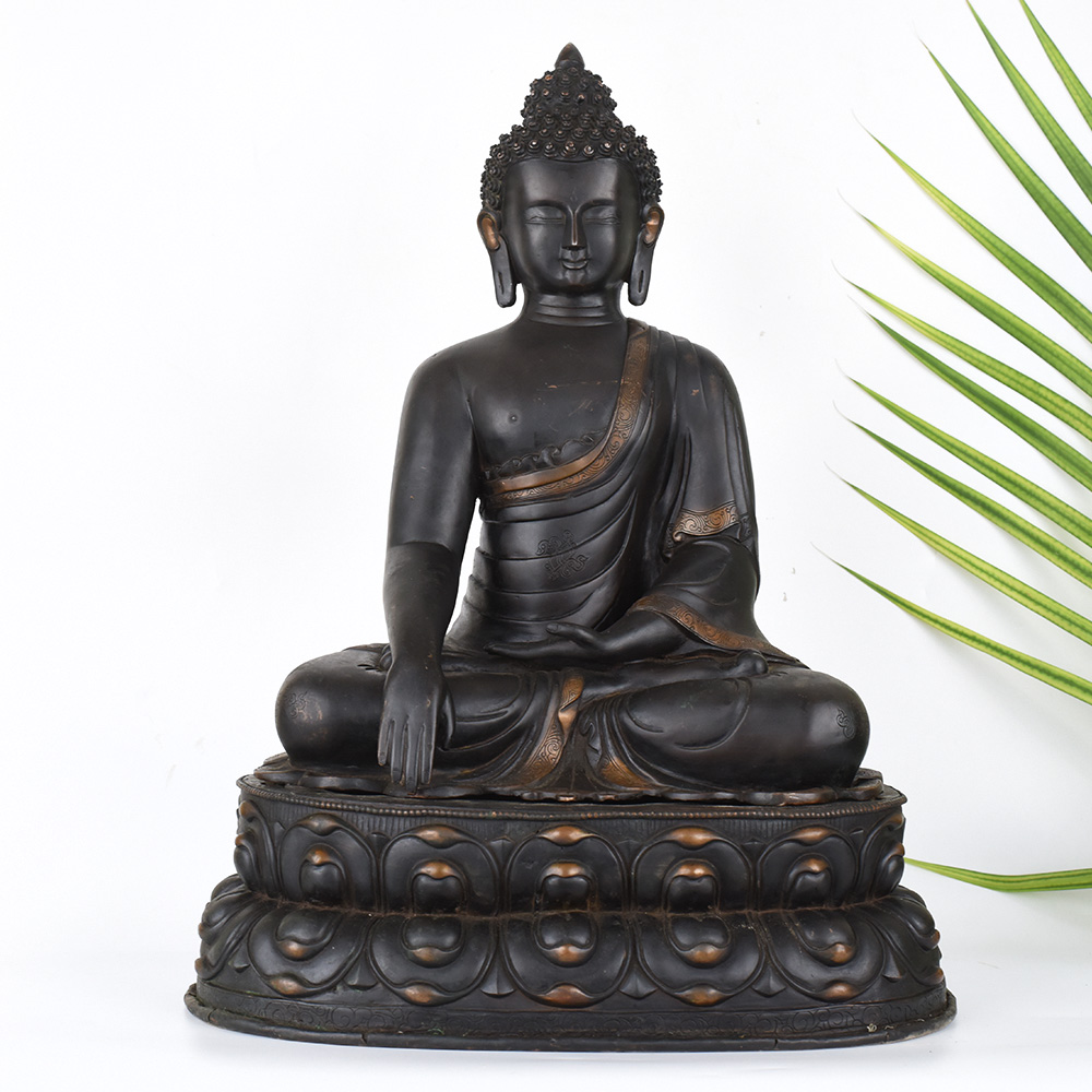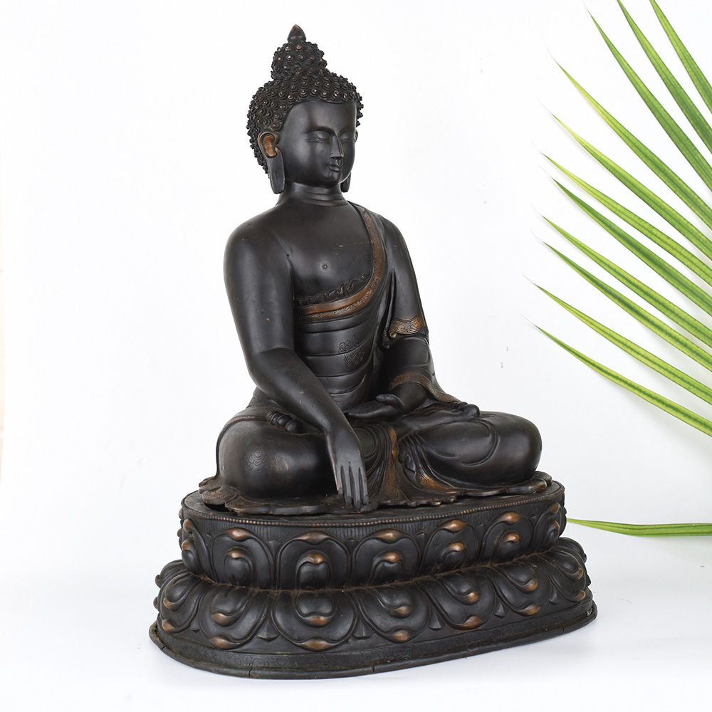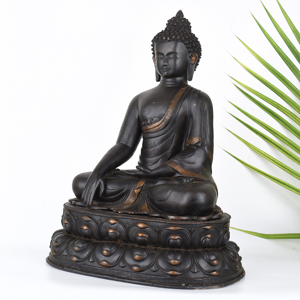 Unlock the profound wisdom and tranquility of the Tibetan Buddhist tradition with this exquisite vintage Deity Lord Buddha copper statue. Meticulously crafted with intricate details, this striking figure embodies the enlightened presence of the Buddha, inviting you into a realm of profound contemplation and inner peace. This vintage Buddha statue is more than just a decorative piece - it's a portal to a higher state of being. As you gaze upon the serene expression and tranquil pose, you'll feel the weight of the world melt away, replaced by a sense of clarity and oneness with the universe. Display this exquisite artwork in your prayer room or meditation space, and let its calming presence guide you towards a deeper understanding of yourself and the world around you. Whether you're a devout Buddhist or simply seeking a source of inspiration and inner calm, this Tibetan Buddha copper statue will become a cherished centerpiece in your spiritual practice. Bring the timeless wisdom of the East into your home and embark on a transformative journey of self-discovery and enlightenment.
