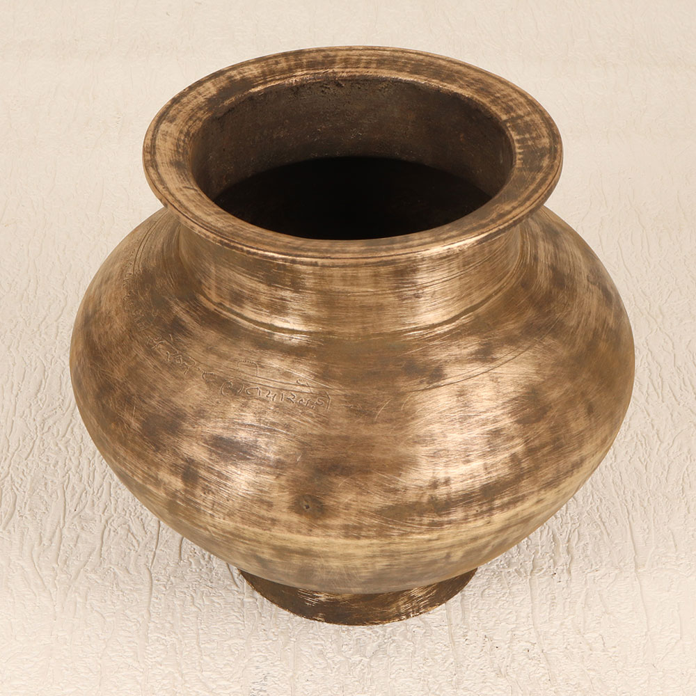 Enhance your spiritual space with our exquisite Vintage Brass Holy Water Pot that is a sacred vessel handcrafted by talented Indian artisans in the revered South Indian Art tradition. This timeless piece, adorned with an antique brown finish, resonates with the richness of history and spirituality. Fashioned from high-quality brass, it serves as a dignified container for holy water during prayers, rituals, and havans. Versatile in function, this pot seamlessly transitions from a prayer room essential to an indoor flower pot, adding an aura of sanctity to your home, office, restaurant, hotel, or cafe. The intricate craftsmanship reflects the cultural heritage and dedication of the artisans, making it a unique addition to your vintage collection. As a thoughtful and meaningful gift, this Vintage Brass Holy Water Pot is perfect for special, festive, or auspicious occasions, allowing you to share the beauty of tradition and spirituality with your loved ones.