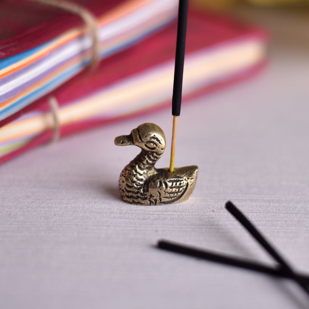 Antique Golden Brass Duck Agarbatti Holder Stand
