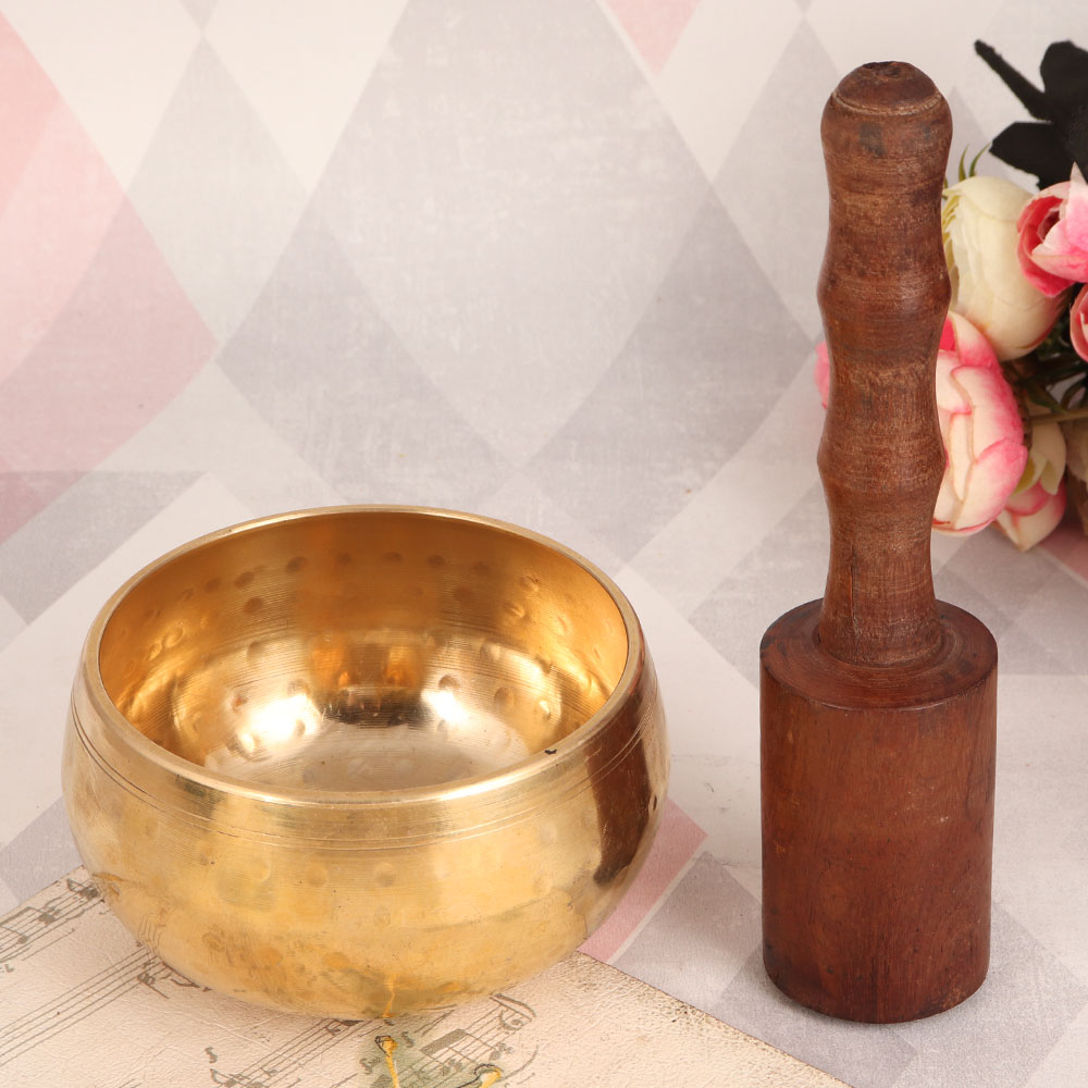Enhance your decor and immerse yourself in the harmonious world of sound with our exquisite Brass Singing Bowl, lovingly handcrafted by highly skilled Indian artisans. This timeless piece boasts an antique golden finish that exudes vintage charm, making it an exquisite addition to any space. Crafted from high-quality brass, this singing bowl produces resonant, soothing tones when played with the included wooden mallet. Its mesmerizing sound is perfect for meditation, relaxation, or simply adding a touch of tranquillity to your surroundings. Whether you're at home, in the office, dining at a restaurant, staying at a hotel, or enjoying a cup of coffee at a cafe, this singing bowl creates a serene atmosphere. It can grace your vintage collection, museum, or exhibition, adding a touch of history and culture to your showcase. It's also a thoughtful gift for your loved ones on special, festive, or auspicious occasions, bringing them the gift of harmony and positive energy.
