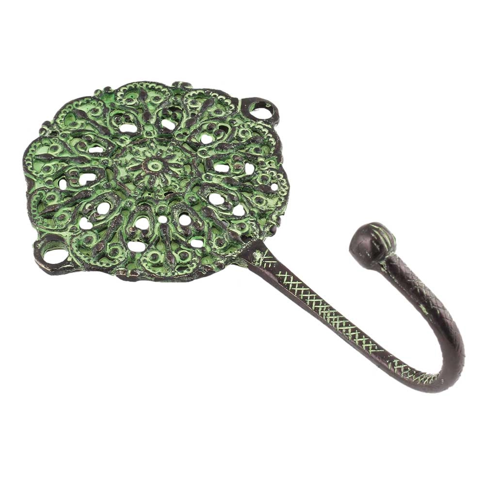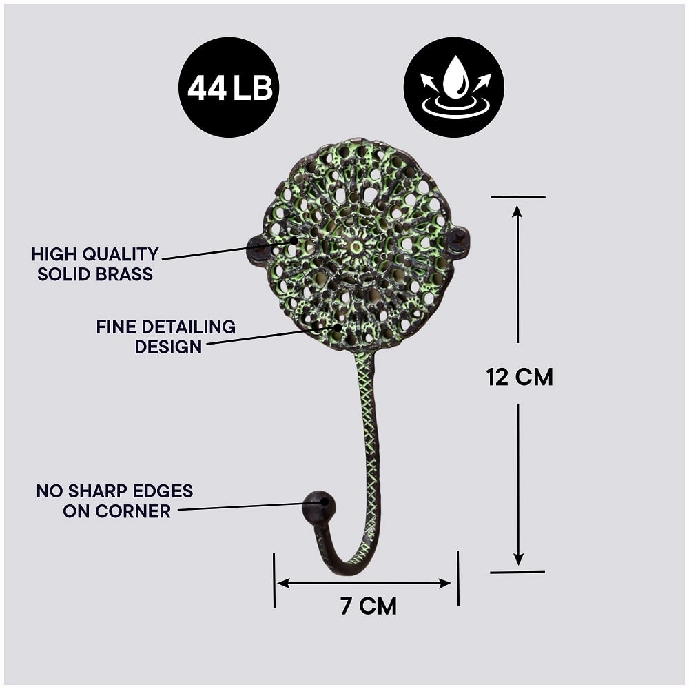 The Antique Green Round Floral Wall Brass Decorative Hook combines timeless craftsmanship with everyday practicality. Handcrafted from 100% solid brass and finished in a rich antique green patina, this hook features a delicately detailed round floral motif. Designed to add character to your walls while serving a purpose, this piece brings vintage elegance and utility into your home. Whether used for hanging towels, jewelry, or keys, it makes organization feel intentional and artistic.