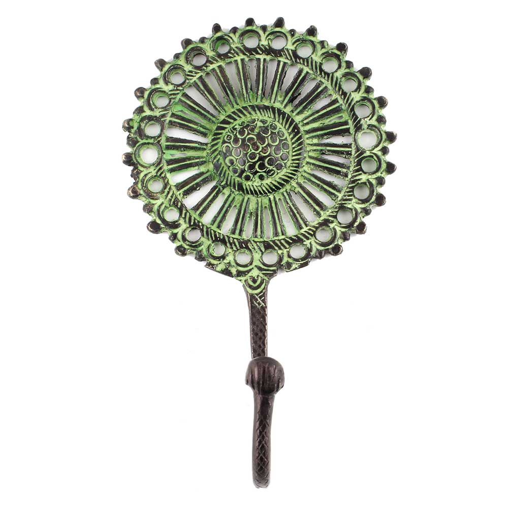 Bring the warmth of nature and a touch of vintage charm to your space with the Antique Green Sunflower Wall Brass Decorative Hook. Handcrafted from solid brass and finished in a soft antique green patina, this wall hook features a detailed sunflower design that radiates positivity and timeless beauty. More than just a decorative accent, it offers a durable and functional solution for organizing your essentials in any room.