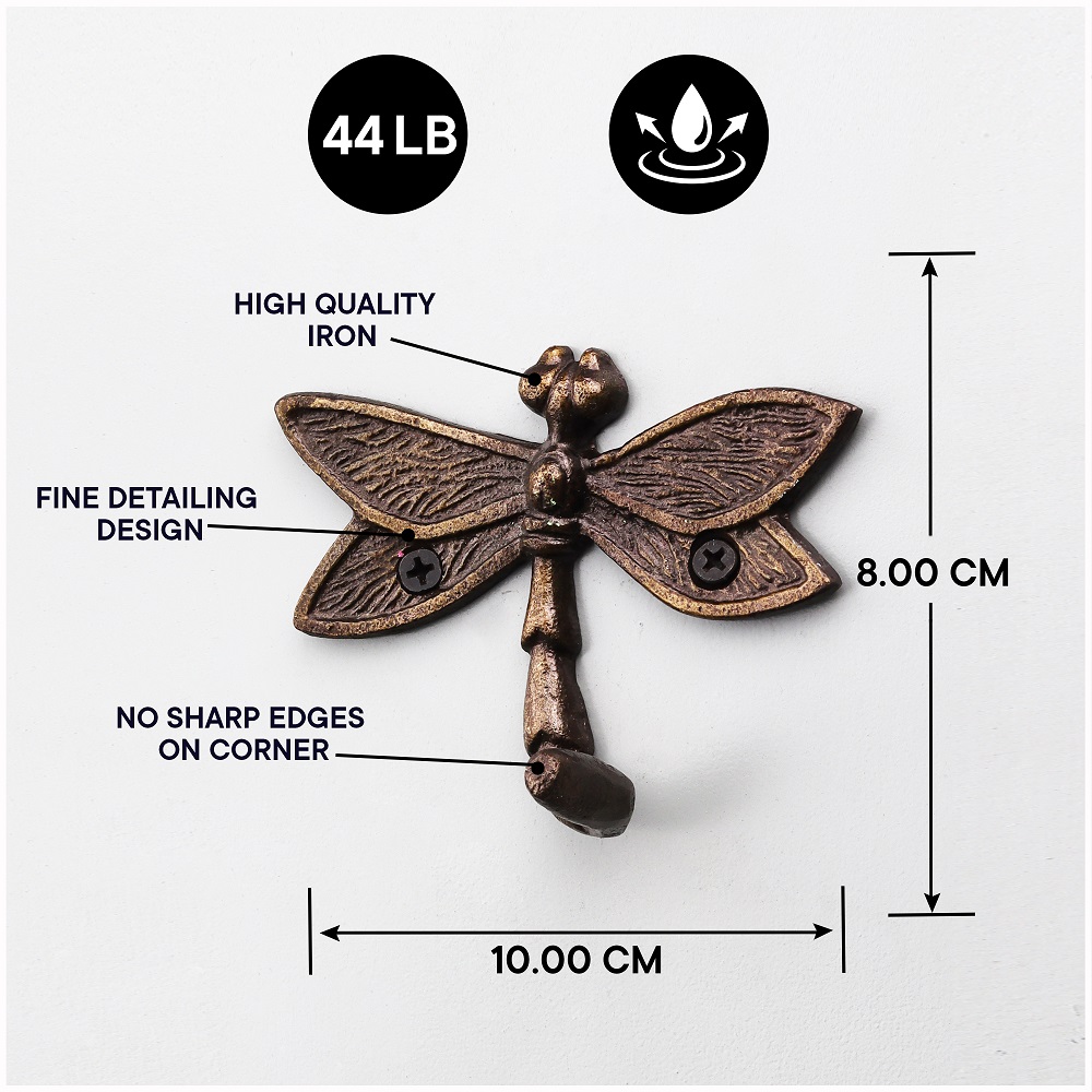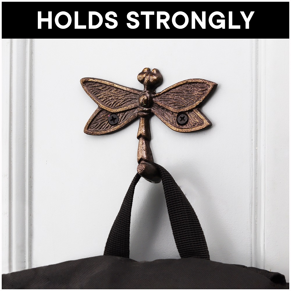 The hand-forged dragonfly shape adds a nature-inspired accent to your wall while doubling as a charming piece of functional decor.