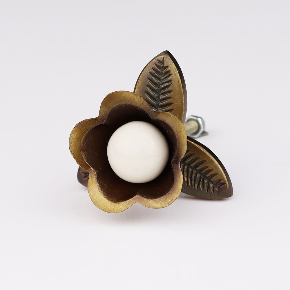 These knobs are a wonderful addition to vintage-inspired interiors, offering a hint of antiquity while keeping a clean, fresh look. The combination of the white ceramic bloom and the antique iron base makes them ideal for infusing a rustic charm into any piece of furniture, from cabinetry to doors and beyond.