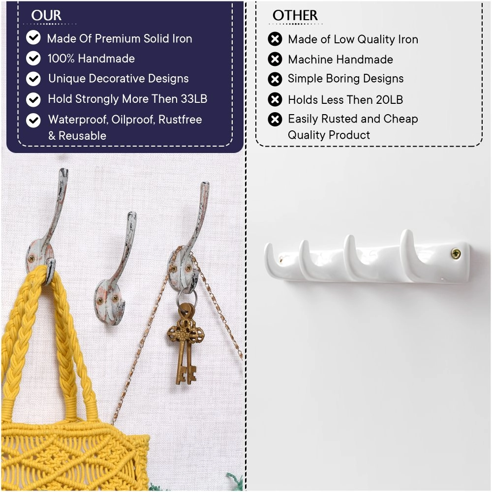Made from solid cast iron, these hooks are built to hold up against daily use without warping or breaking.