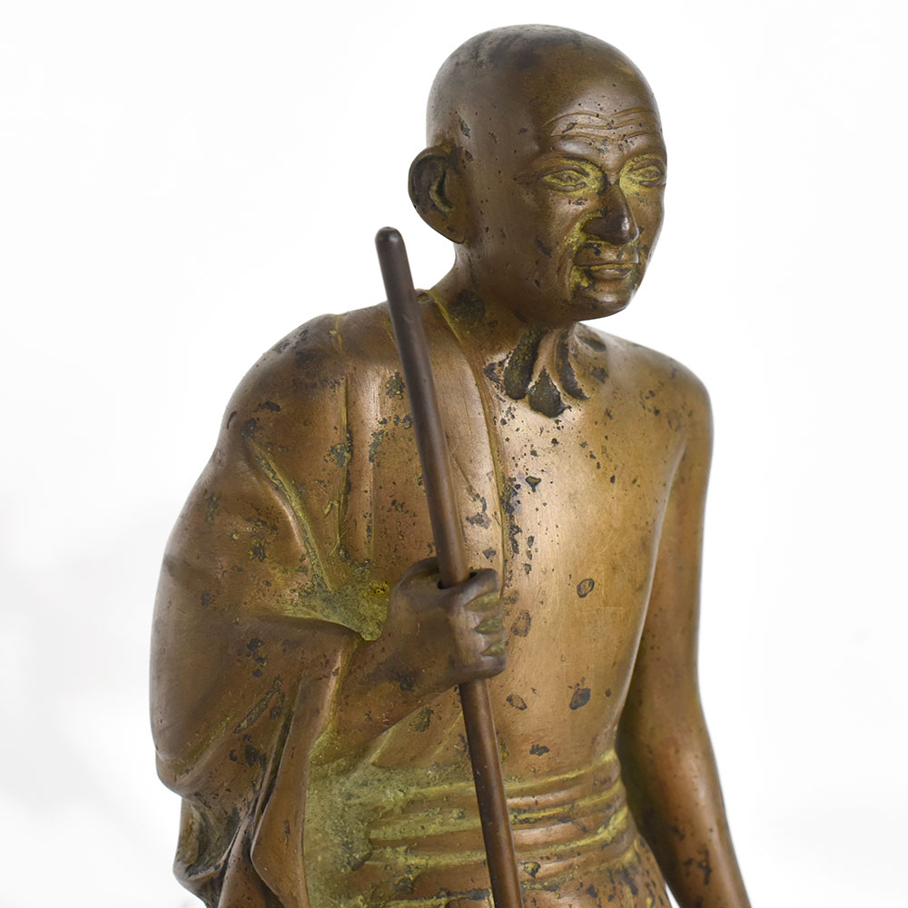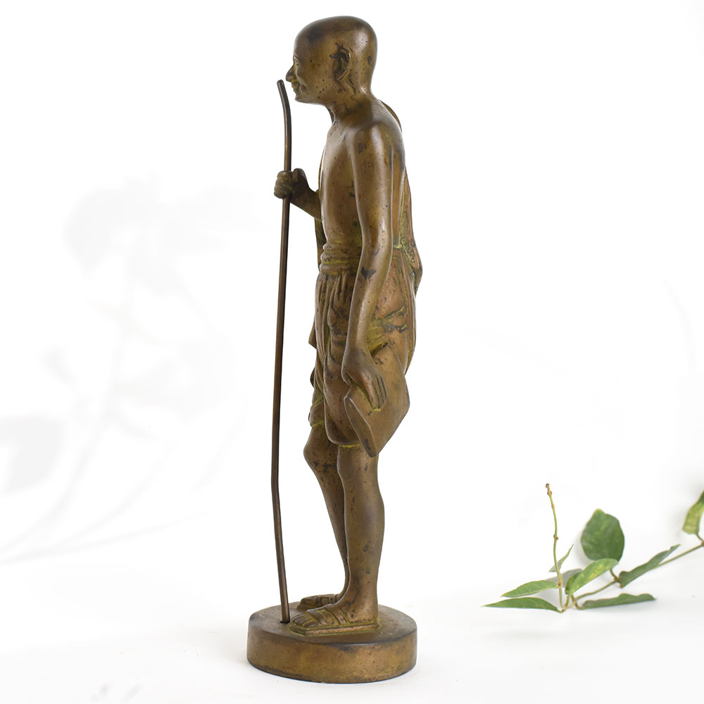 Invite peace and wisdom into your home with this antique style sage brass statue. The figure portrays a serene elder holding a staff and book, symbolising guidance, knowledge, and spiritual journey. Handcrafted from brass, the statue features detailed folds in the robe and a contemplative expression. Place it in a meditation corner, study, or living room to create a calming atmosphere. The warm, aged finish adds authenticity and depth, while the solid base ensures stability. Over time, the brass will develop a natural patina, further enhancing its antique appeal. As each statue is made by artisans, slight variations in texture and colour make your piece unique.
