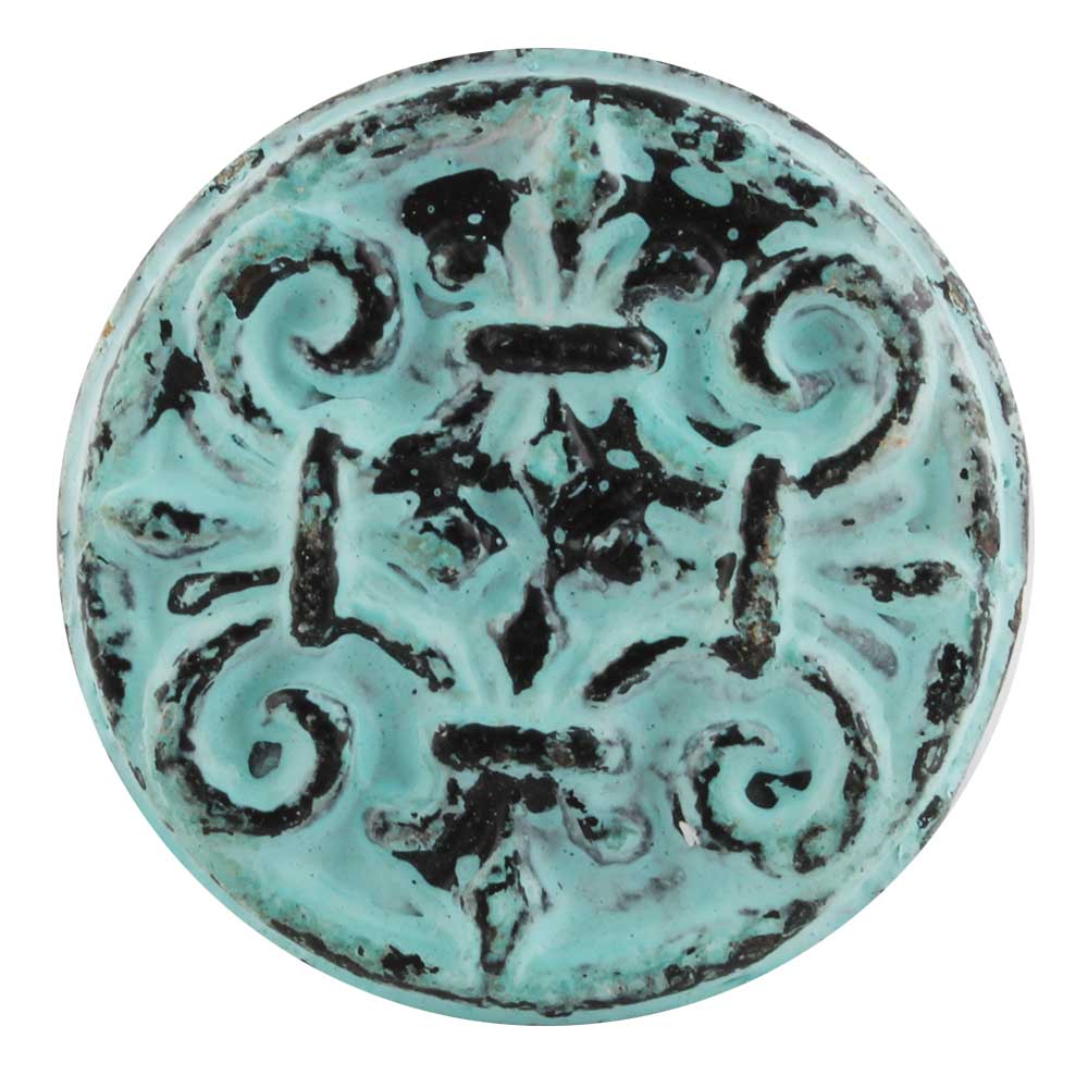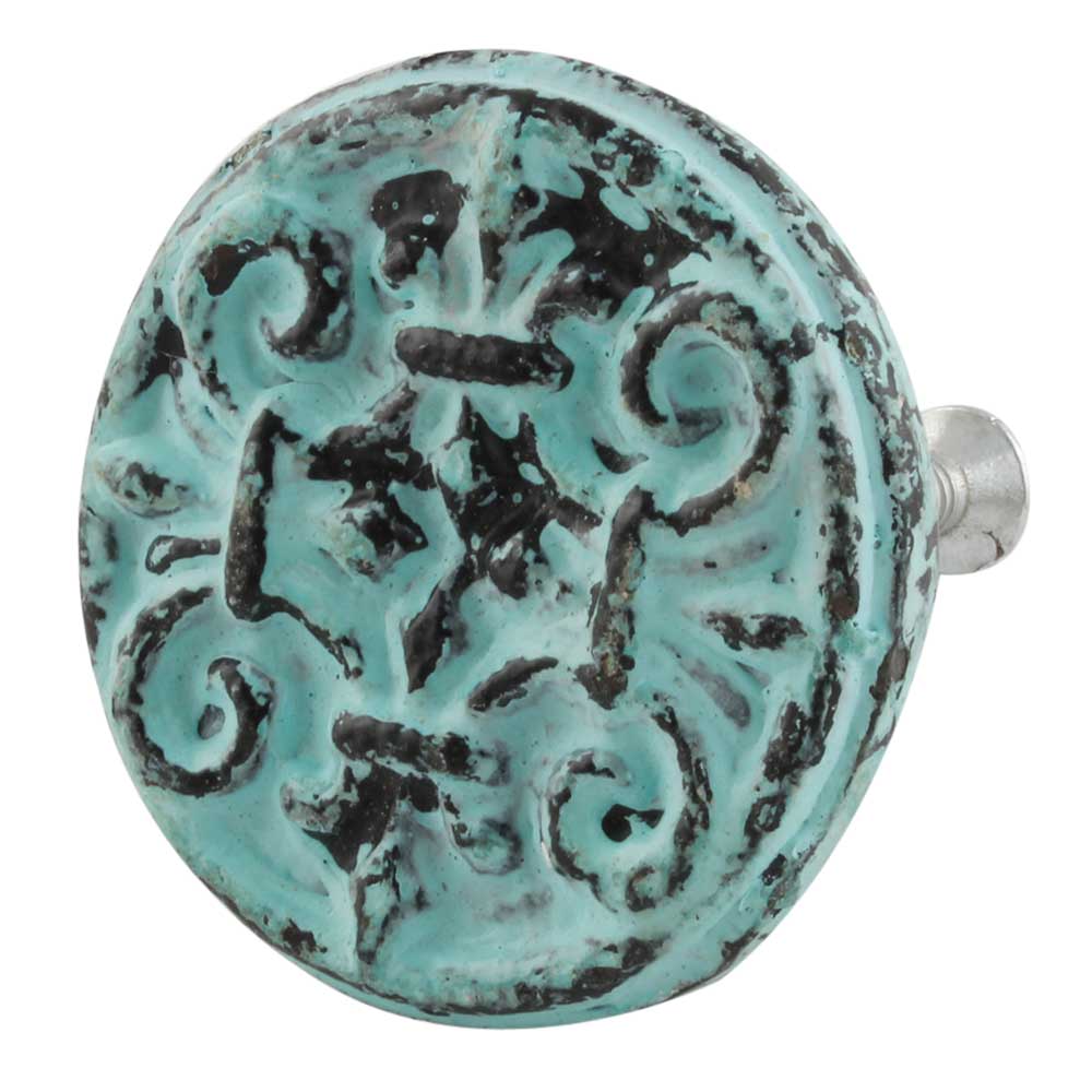 Antique Sage Green Floral Round Iron Cabinet Knob
