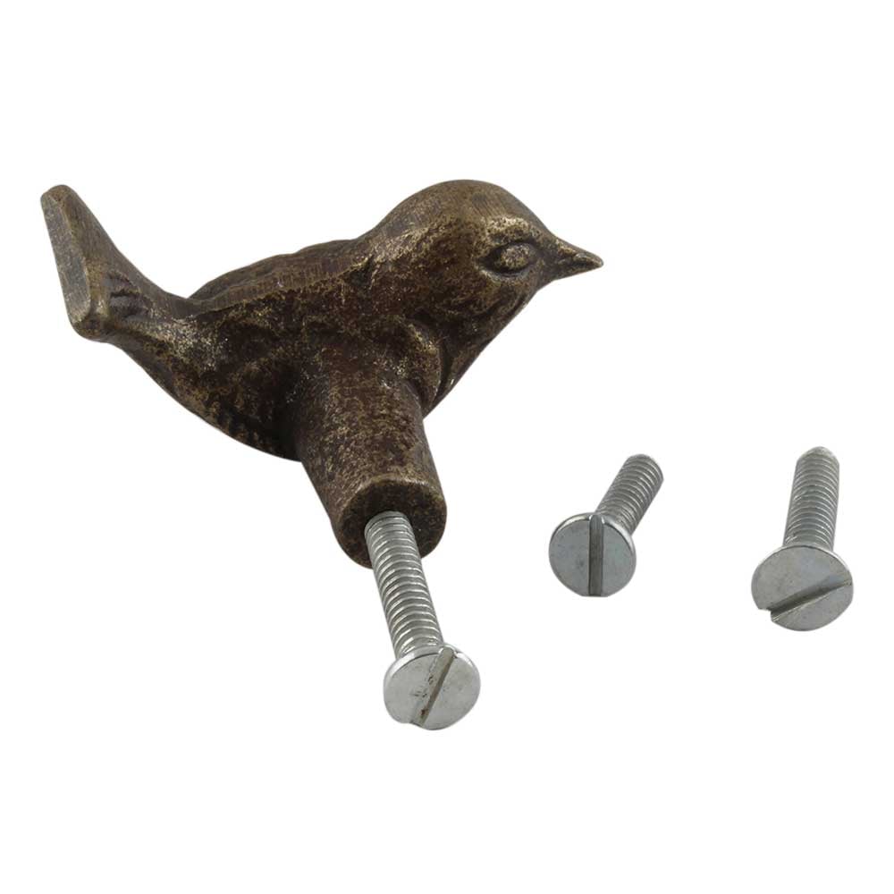 Easily upgrade your cabinets, drawers, and other furniture with this knob to give your home a personalized and vintage-inspired look. The bird motif will stand out beautifully against both light and dark wood tones, making it an eye-catching accent in any room.